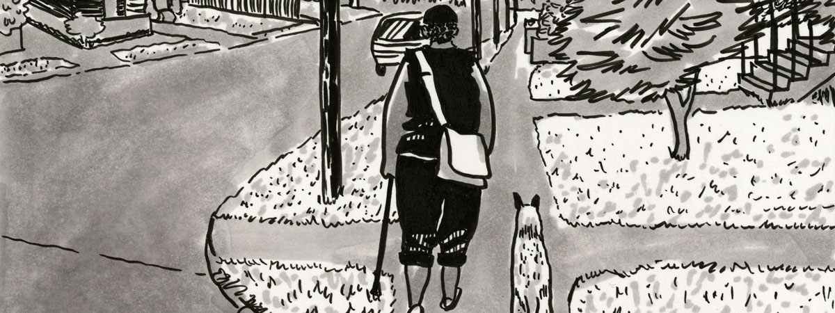 CASTING SHADOWS is a multi-sensory video installation of comics that explore disability culture and the human experience. Projections of hand drawn comics and original soundscapes envelop the viewer in a wash of story. CASTING SHADOWS is a cultural conversation that considers themes of animal-human interdependence, aging and connection, family, the role of assistive technology, and home.