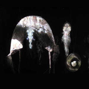 Visitors experience a sculptural fiction about an Internet-generated ghost, a metaphoric figure narrated through a series of video mapped kinetic sculptures. The work aims to search and research the poetics between sensuality and the pleasure of watching, which are inhabited and cultivated though the infrastructure of the Internet. This story-telling installation explores the feelings between familiar and uncanny, repulsive and desirable, historical and imaginary.