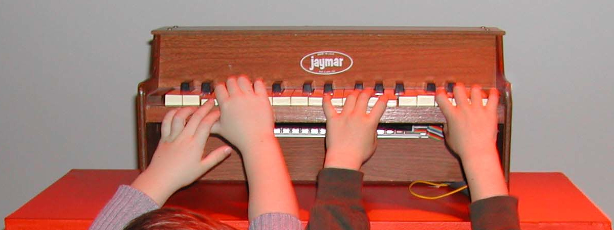 Klavier Nonette is comprised of 9 toy pianos made by Schoenhut and Jaymar during the 1950s and 1960s. Each piano is electrofitted with an electromechanical device that can be automatically played like a player piano, but can also be played manually. A console similar to a jukebox is at the entrance to the gallery, inviting visitors to select a composition for the price of a quarter. Composers were rewarded from the proceeds according to the frequency of their works’ performance. In addition to compositions selected for Jack Straw’s New Media Gallery installation, other works created for Klavier Nonette are included in the collection including compositions by John Cage, George Lewis, David Mahler, Liberace, and Janice Giteck and Marcus Macauley among others.
