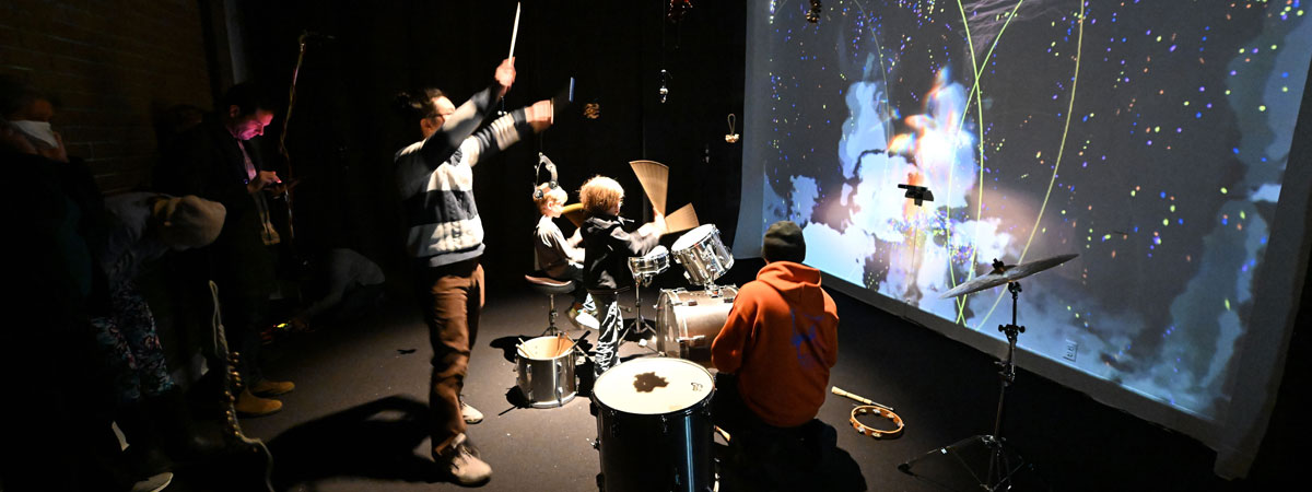Wei Yang and Murphy Janssen perform live with the installation, in person in the Jack Straw New Media Gallery