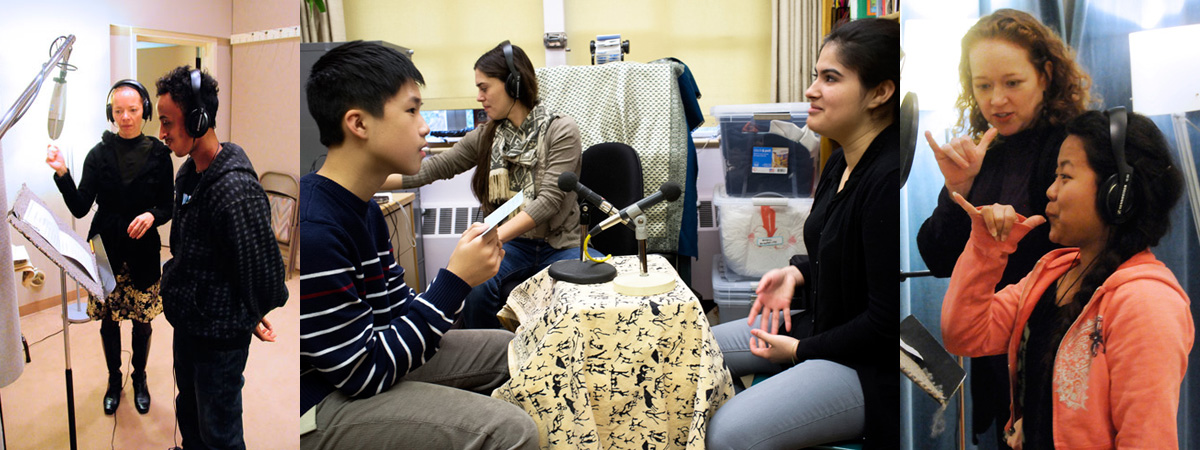 After the interviews are recorded, students work with our teaching artists to select highlights from the interviews and write their narration. Our voice coaches coach the students in reading their narration out loud, providing the students with both language and performance support. Our engineers then join the students and voice coaches to record their narration – either in the Jack Straw studios or at the school. Interview segments and narration are then edited and mixed in the Jack Straw studios to create the final audio stories.