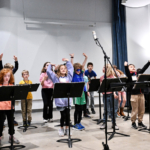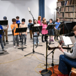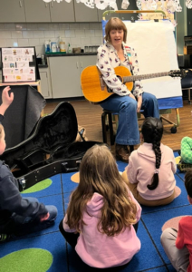 First, Jack Straw musician Tekla Waterfield visited the kindergarten students at Adams and wrote and sang class songs with each of the three classes. The students sang their songs together at a special family event.