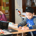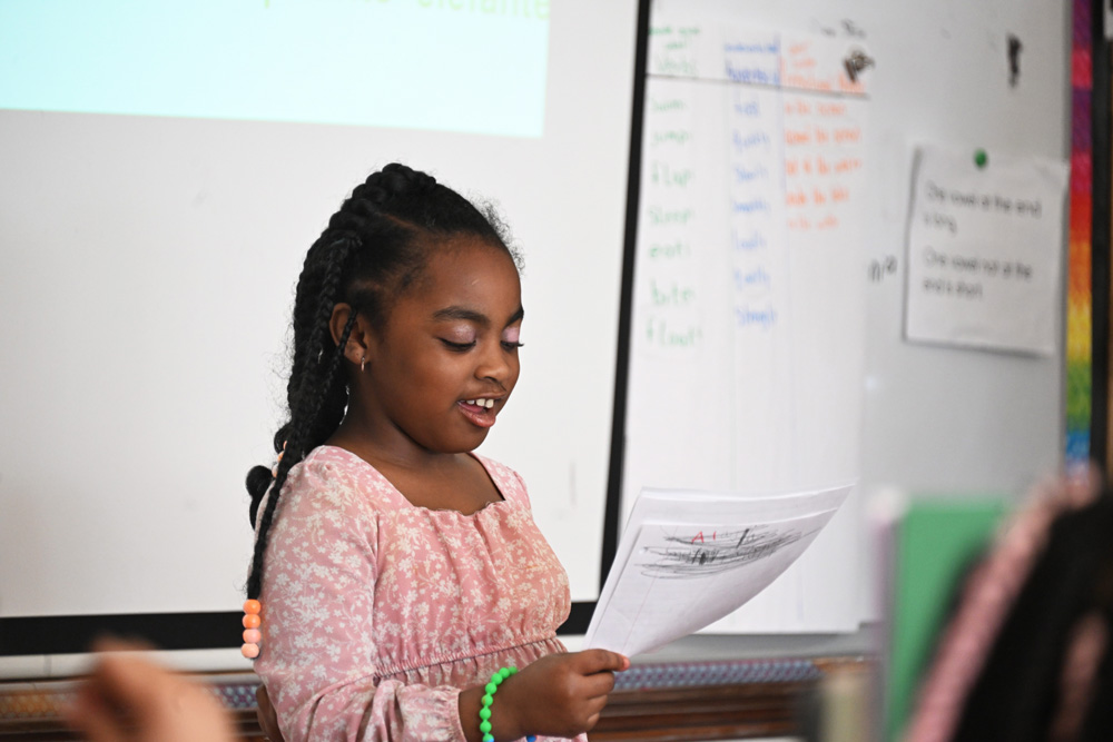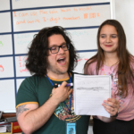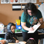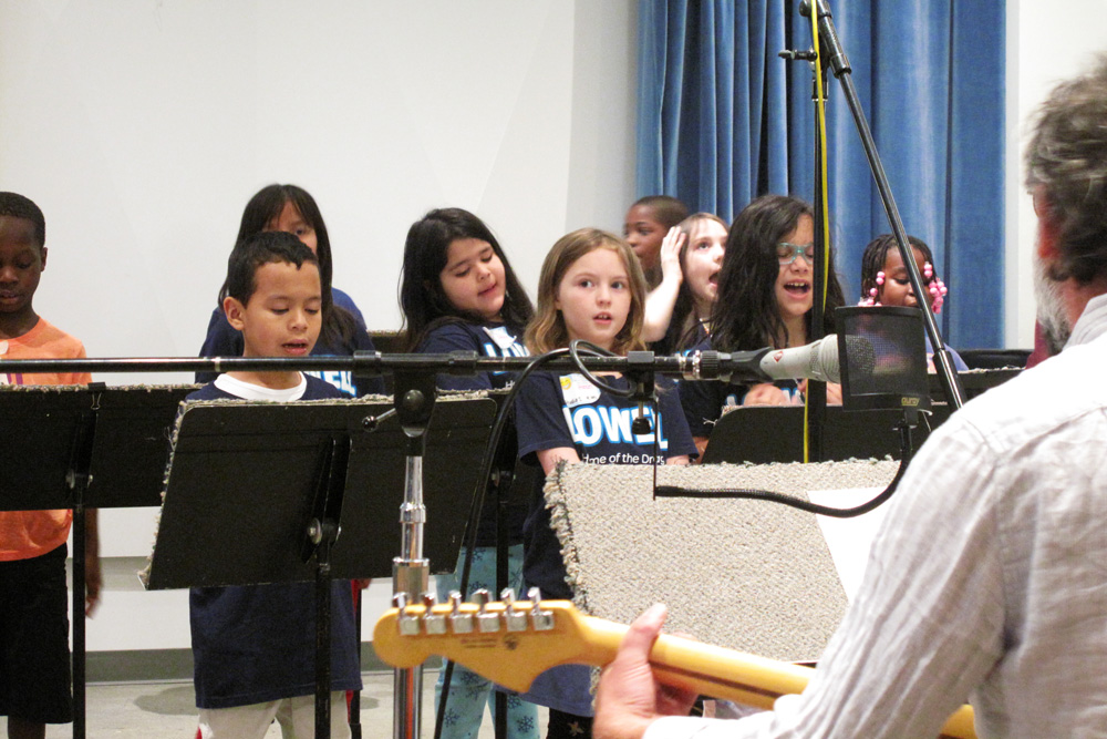 In this project, 2nd grade and Focus special education students worked with Jack Straw’s poets Vincent Rendoni and Carlos Nieto to write their own poetry. Vocal coaches Meg McLynn and Stephanie Roman visited each class to help the students practice reading their work aloud. Musician Tito Ramsey then wrote a song inspired by the students’ poems, with special verses for each class.