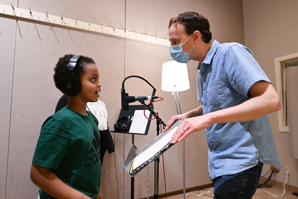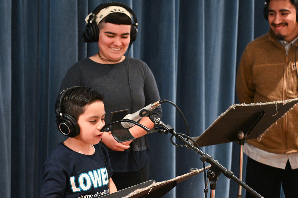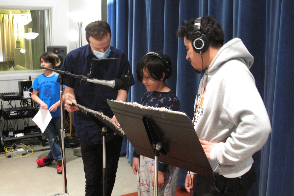 The students came to Jack Straw’s studios and recorded the poems with vocal coaches Meg, Carlos, Stephanie, and Leah Fishbaugh, and engineers Zeos Greene, Daniel Guenther, and Ayesha Ubayatilaka. Each class also recorded their version of the song in the studio with Tito and our engineers.