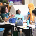 In a companion project, Jack Straw developed and implemented an accessible and inclusive multidisciplinary arts integration project working with Lowell’s Distinct and Aspire special education and medically fragile students. Jack Straw artist Leah Mann held a series of workshops with students over ten weeks, helping them create their own original sound compositions with their voices, piano, and an electronic instrument called an Orba, a synthesizer/looper/MIDI controller that lets anyone make music immediately.