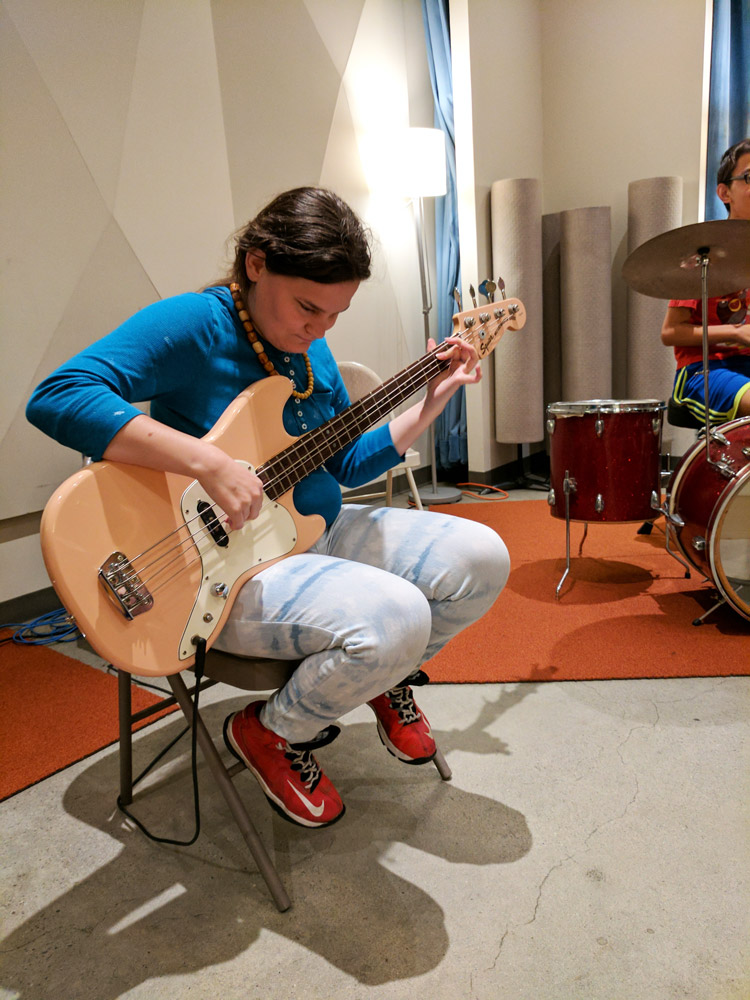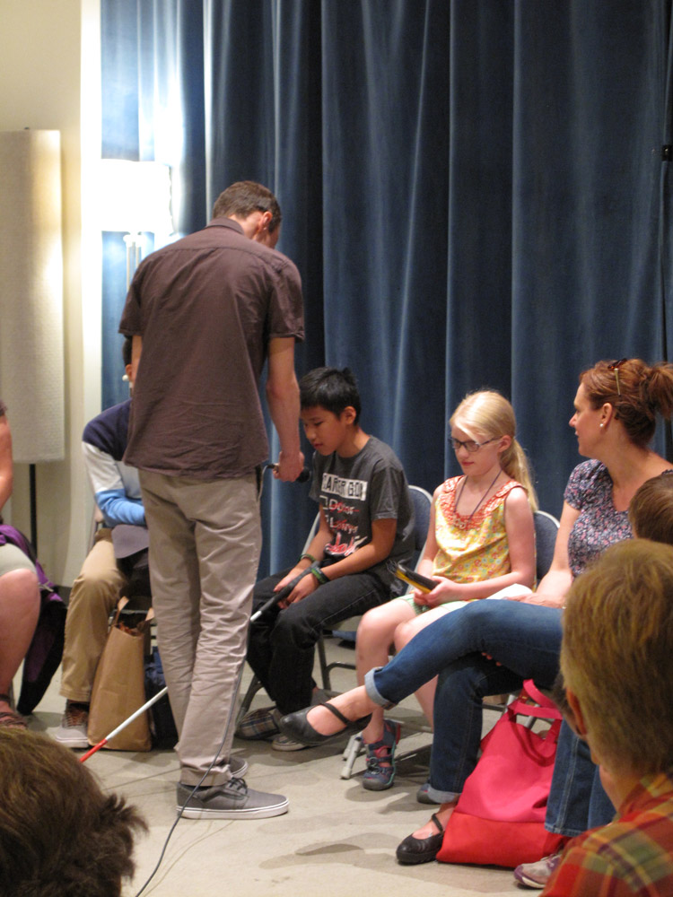 Musician Levi Fuller wrote the song “Sighted as a Bat (The Click-Click Song),” about human echolocation, then performed and recorded it with the YES 1 students in Jack Straw’s studio, along with teaching artist Bill Horist on guitar. Another group of students produced “Echo,” an audio drama about echolocation written by Jesse Minkert.