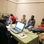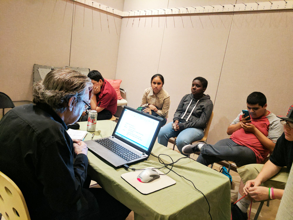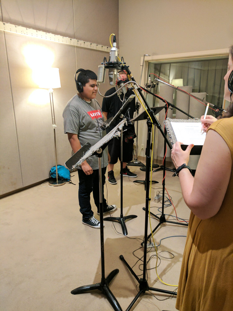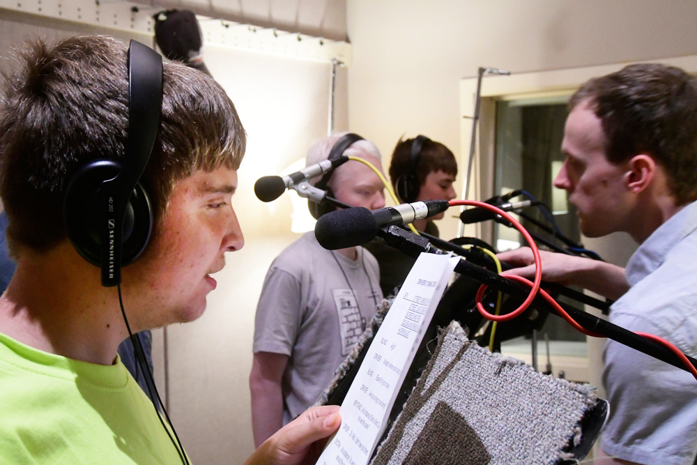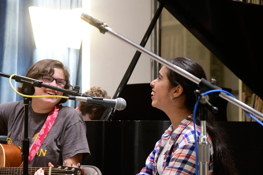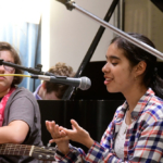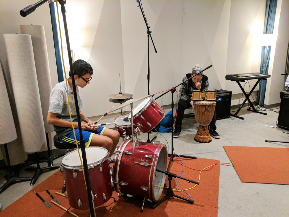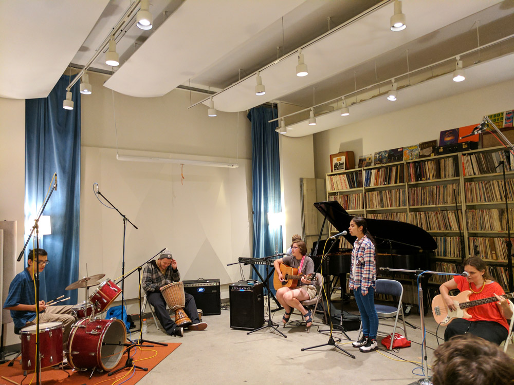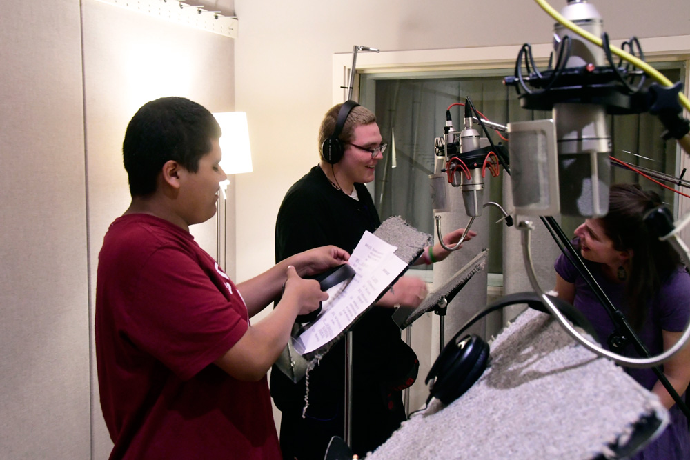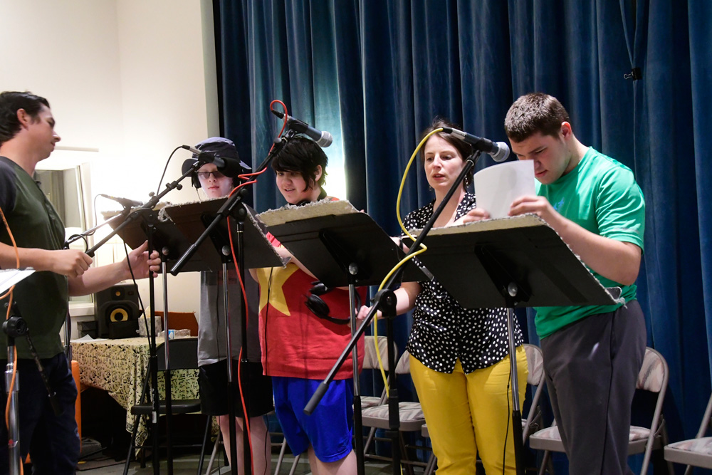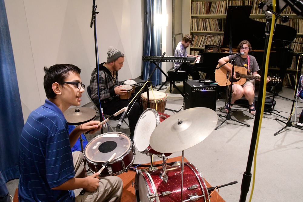 Over the following weeks, high school students worked with Jack Straw teaching artists to write and record original music and radio drama in the Jack Straw studios. Musicians Bill Horist and Jessica Lurie collaborated with one group of students to write and produce an original song, “Dear Friend.” Writer Jesse Minkert, vocal coach Alyssa Keene, and engineer Daniel Guenther with the drama group of students to create an original radio play, “Downtown Tragedy.”