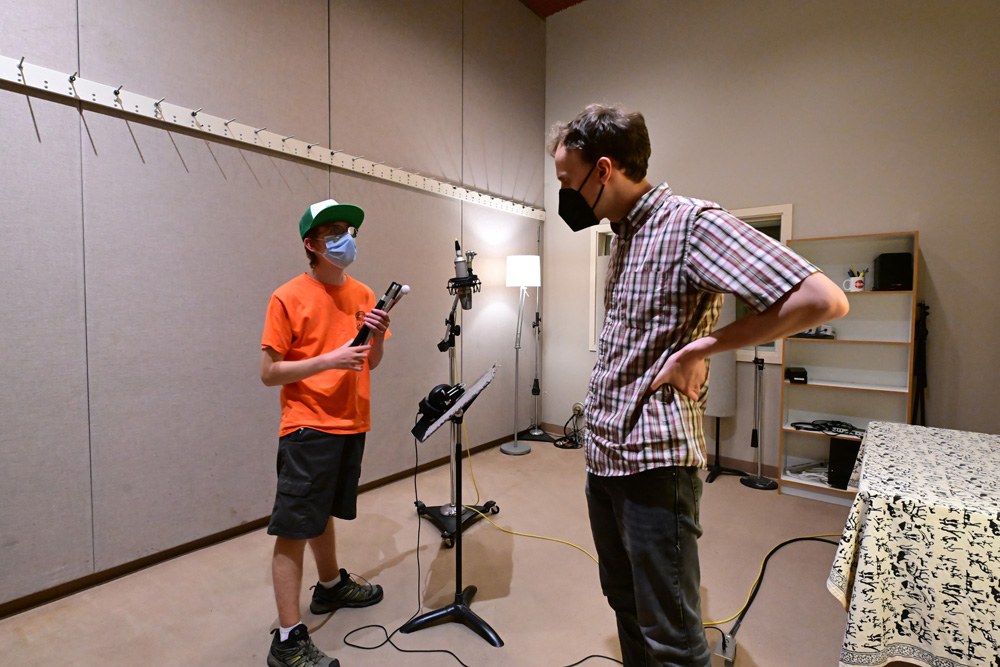 The first group produced “Eyelash” in Studio 1 with Jesse, Joel, and Meg, while the second group worked on “Magic Trick” in Studio 2 with engineer Ayesha Ubayatilaka and vocal coach Kate Myre. The third group worked with musicians Bill Horist and Jessica Lurie to compose original music to accompany the two flash dramas.