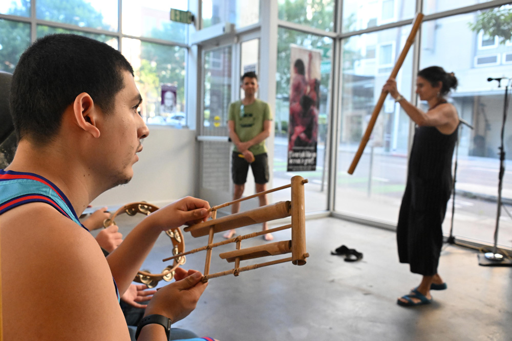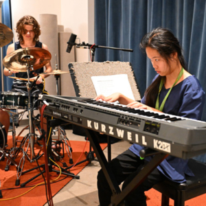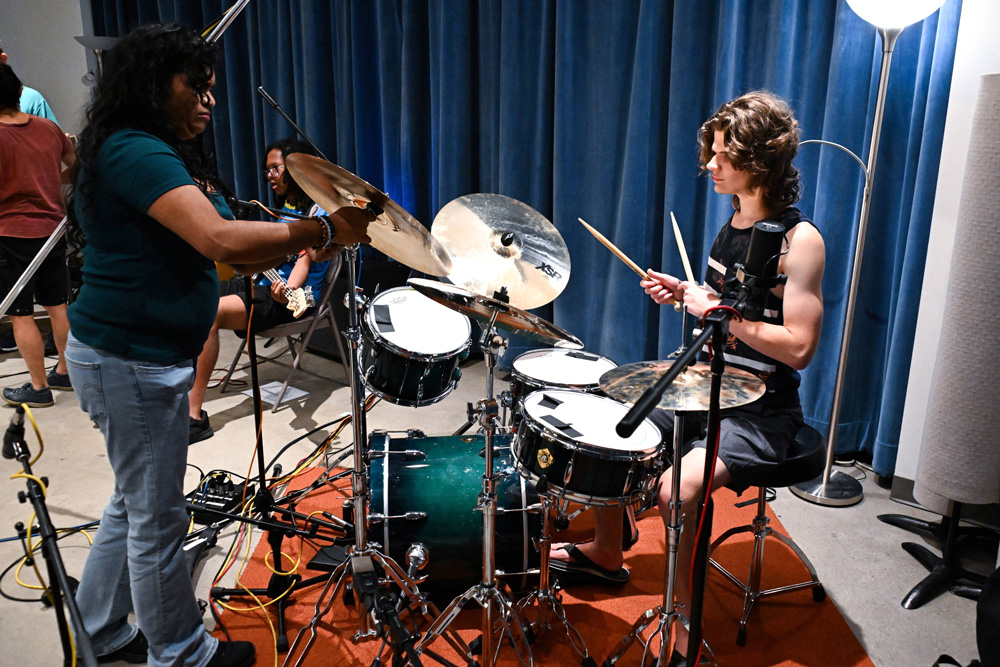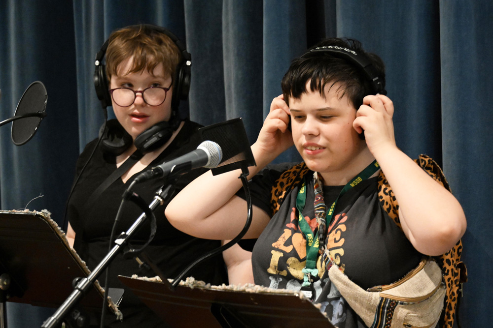 During the opening session of the 2024 Blind Youth Audio Project, a group of 26 students worked with Jack Straw’s artist team of audio engineers, musicians, vocal coaches, and writers to create two flash dramas and learn about the program. After all participants introduced themselves, the group listened to past Blind Youth drama and music productions. Then, the group divided into three teams to record two PSAs, as well as original music to accompany the PSAs.