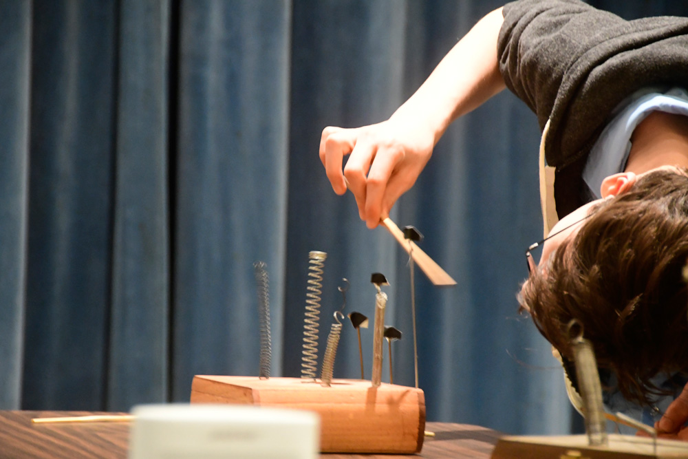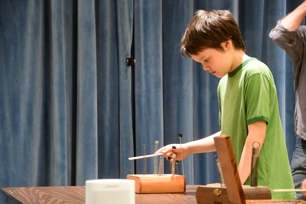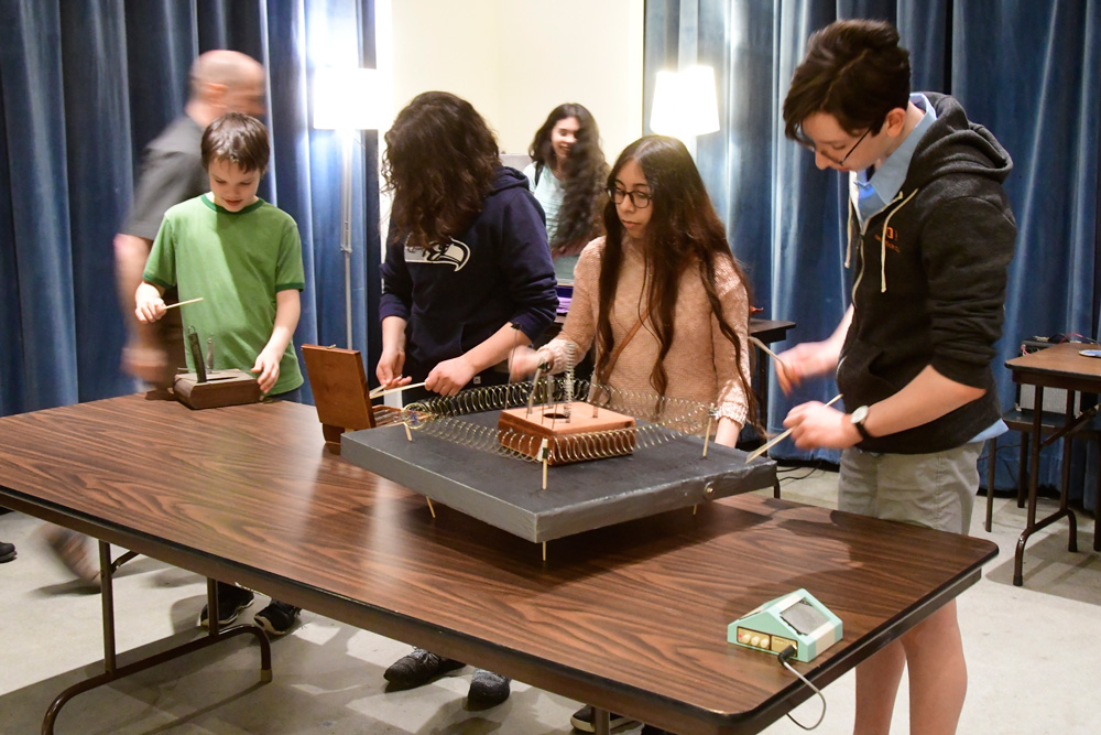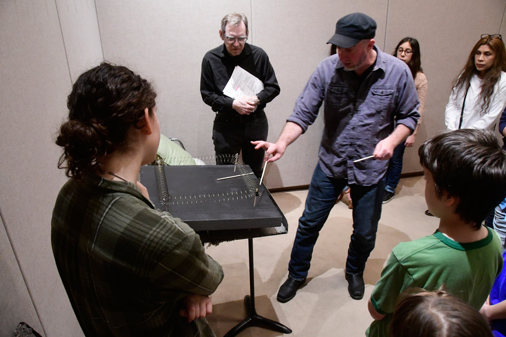 Working with Dave Knot and Steve Barsotti, workshop participants began with listening and sounding games and exercises, exploring the textures and sound-making possibilities of springs, and finally recorded their own sound compositions in the studio. Through listening and touch, amplified springs allowed participants opportunities to practice listening exercises, as well as create their own short, sound-based pieces using both improvisational and compositional techniques.