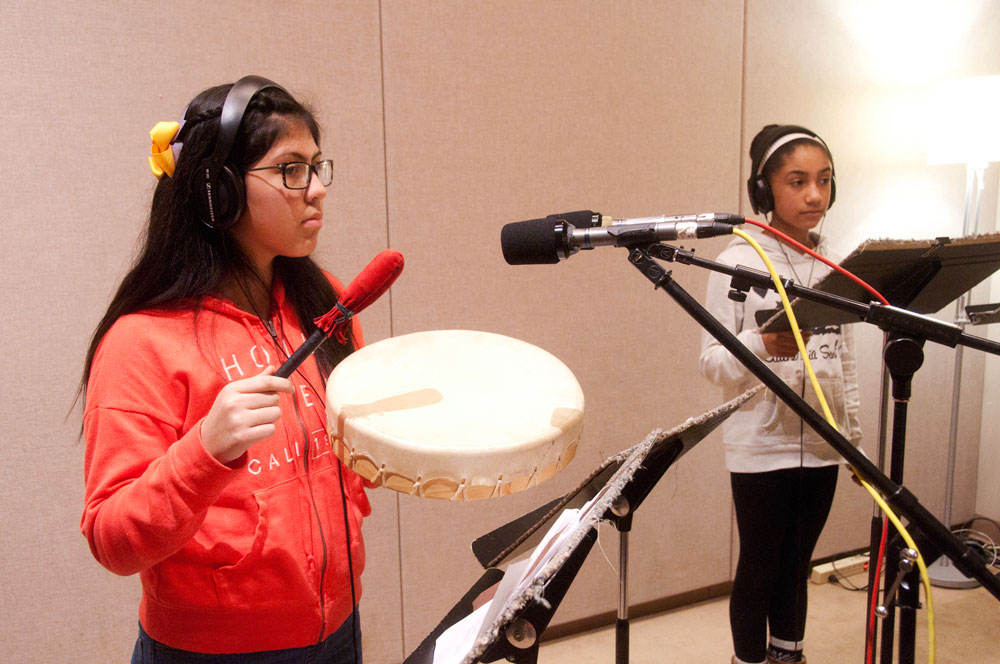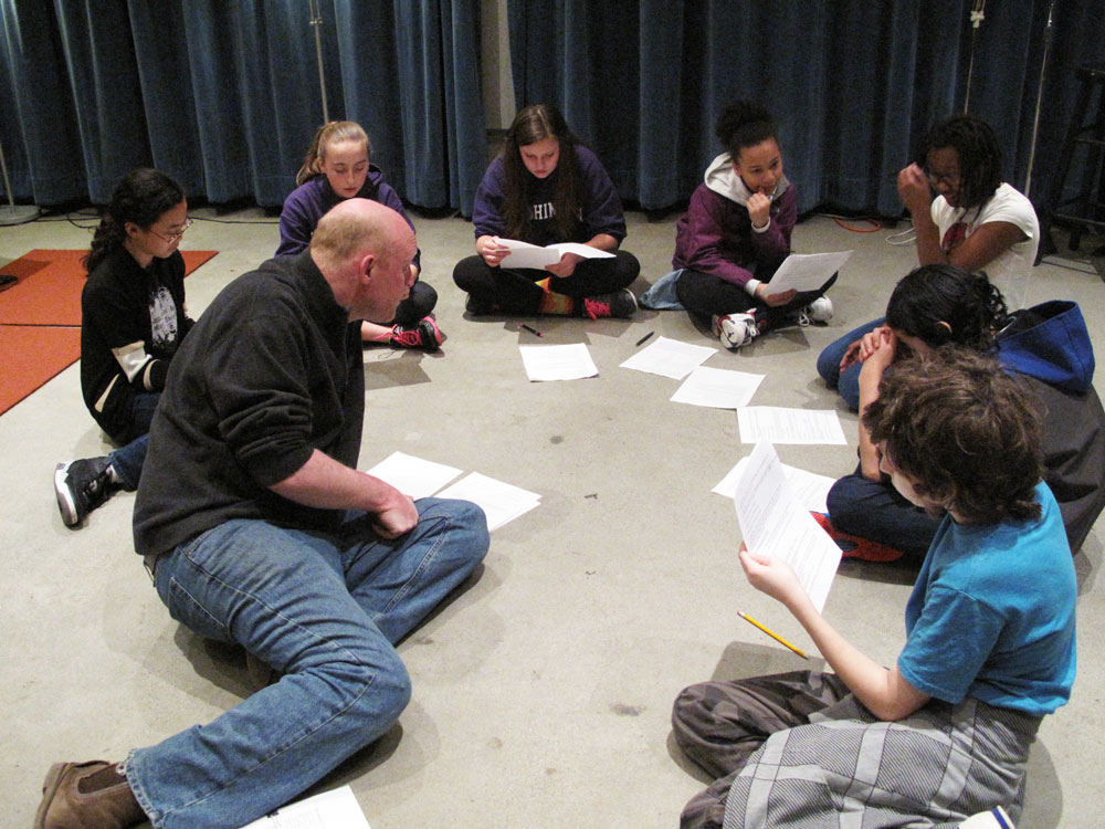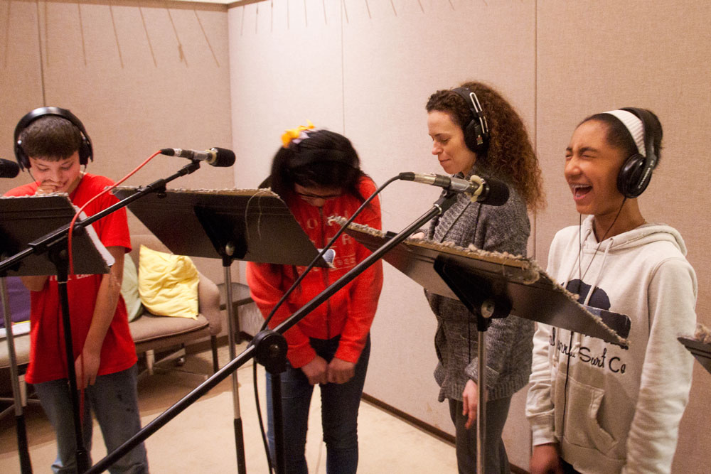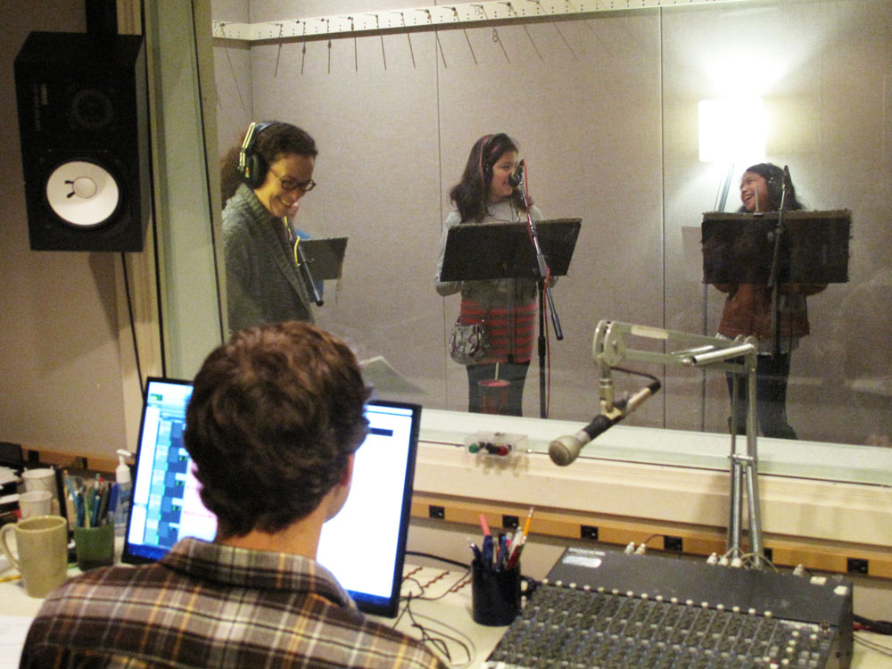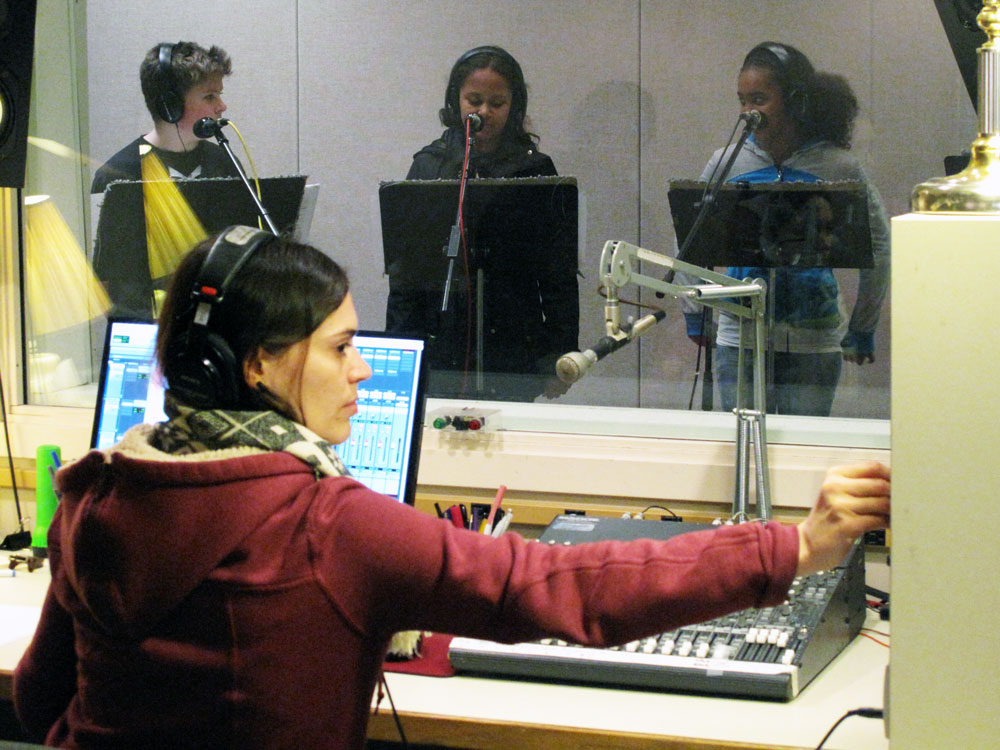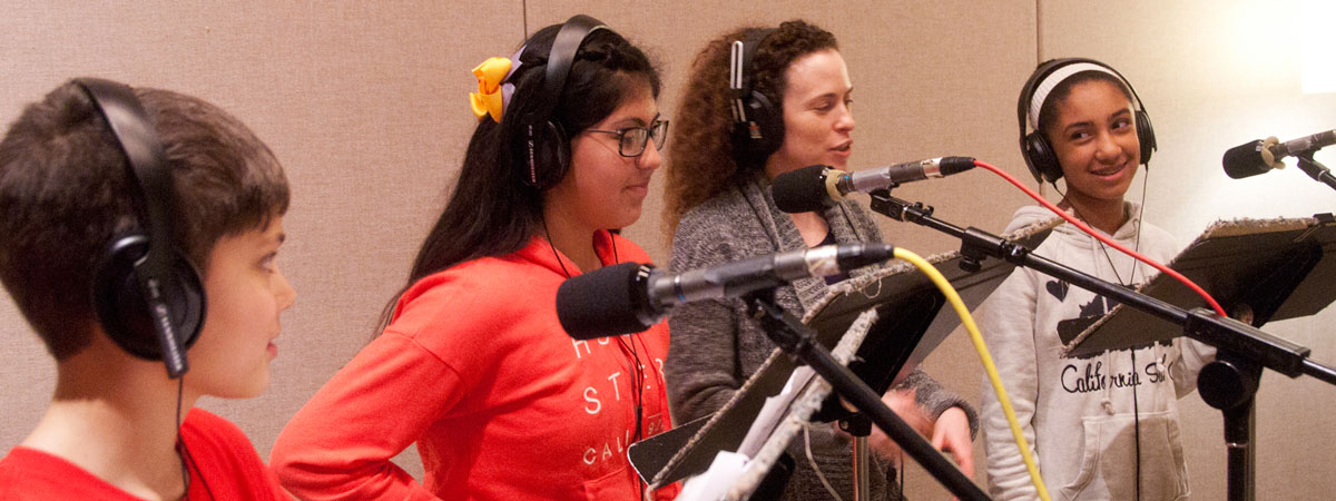 Students worked in the classroom with Jack Straw writer Kathleen Flenniken to write their audio stories. Vocal coaches Meg McLynn and Andrew McGinn and audio engineers Daniel Guenther, Camelia Jade, and Tom Stiles helped students record their stories, create their own sound effects, and produce their audio myths in Jack Straw’s recording studios.