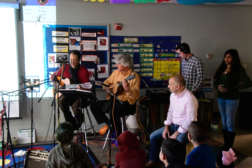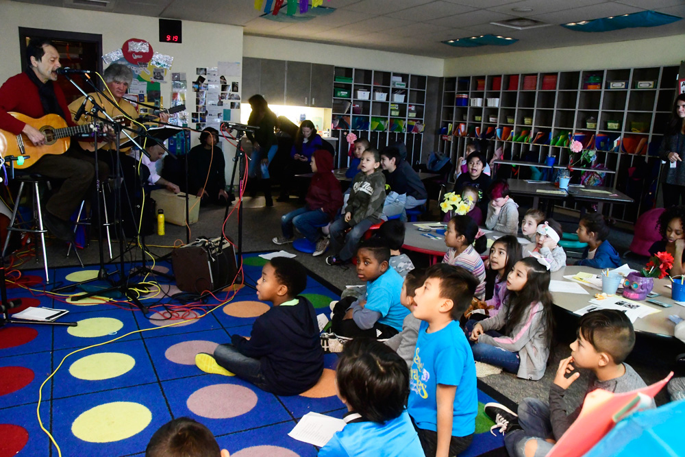 In the 2018-2019 school year, 2nd Graders at Concord International Elementary School worked with Jack Straw teaching artist Vicky Edmonds to write original poems about their feelings, emotions, and “Invisible Beauties.” Jack Straw musicians Abel Rocha and Levi Fuller wrote songs inspired by the students’ poems – Abel working with Ms. Tabor and Ms. Groszhans’s classes, and Levi working with Ms. Adams’s class. Abel and Levi taught the students their songs, and Jack Straw engineers Joel Maddox and Ayesha Ubayatilaka recorded them in the classroom.