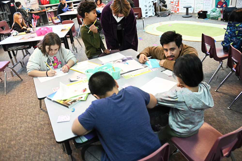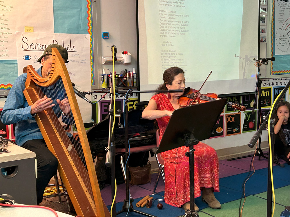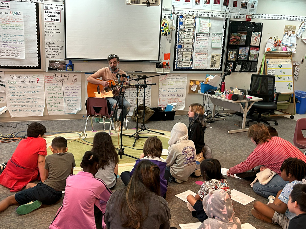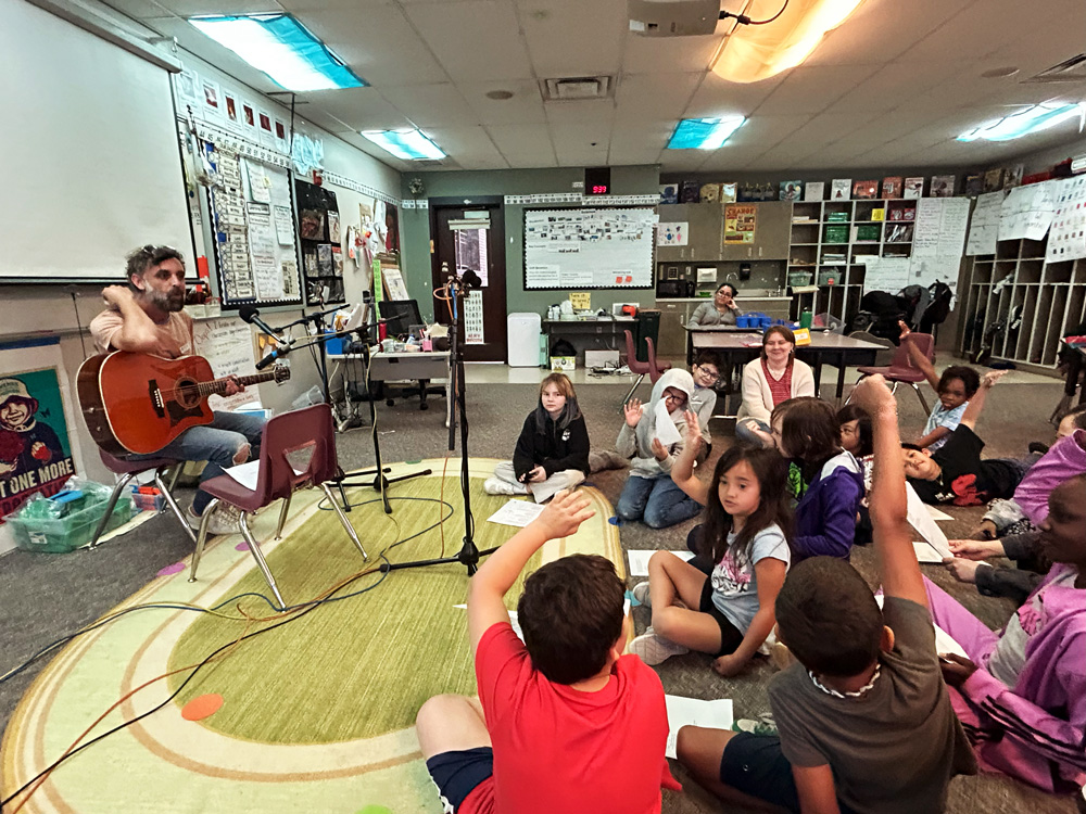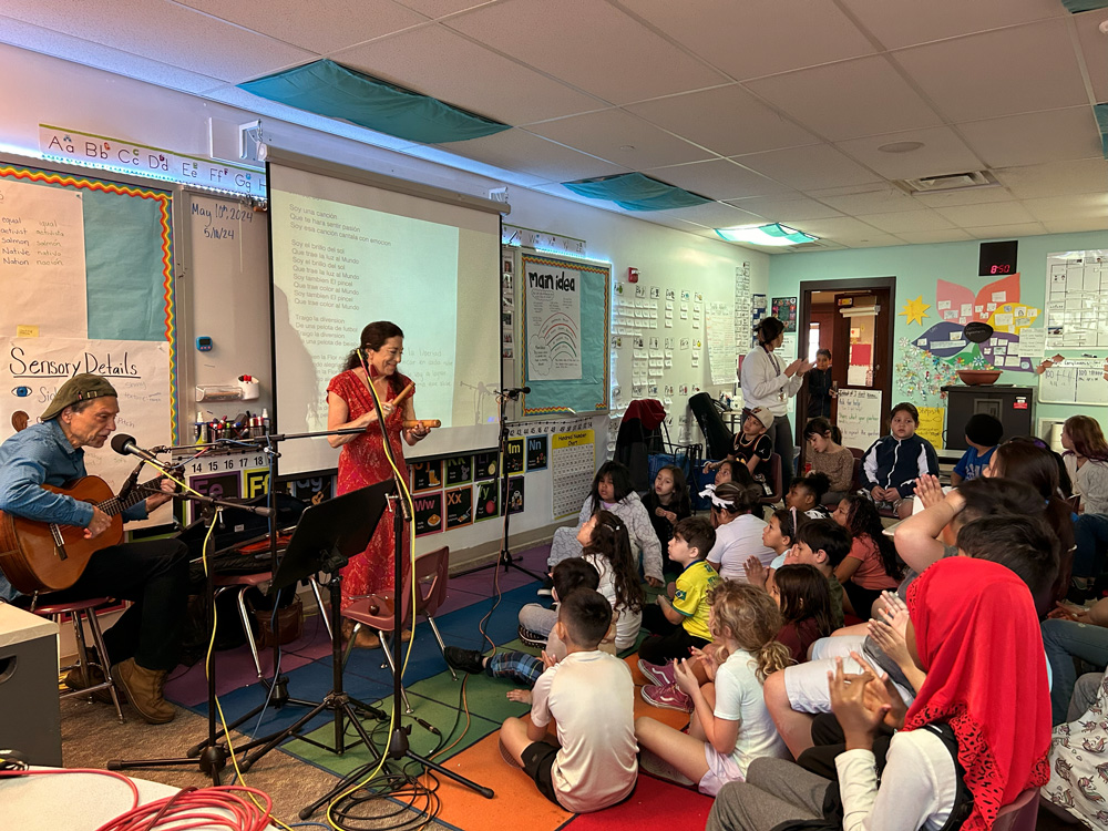 In the 2023-2024 school year, 2nd graders at Concord International Elementary School worked with Jack Straw writer and teaching artist Vicky Edmonds to write original poems about their feelings, emotions, and what they’re like deep inside. Jack Straw musicians Tito Ramsey and Abel Rocha wrote songs inspired by the students’ poems – Tito working with Ms. Dillon’s class, and Abel with Ms. Tabor and Mr. Martinez’s classes. Abel, along with Madeleine Sosin, and Tito joined the students in class along with engineers Daniel Guenther and Ayesha Ubayatilaka to teach them the songs and record them singing together.
