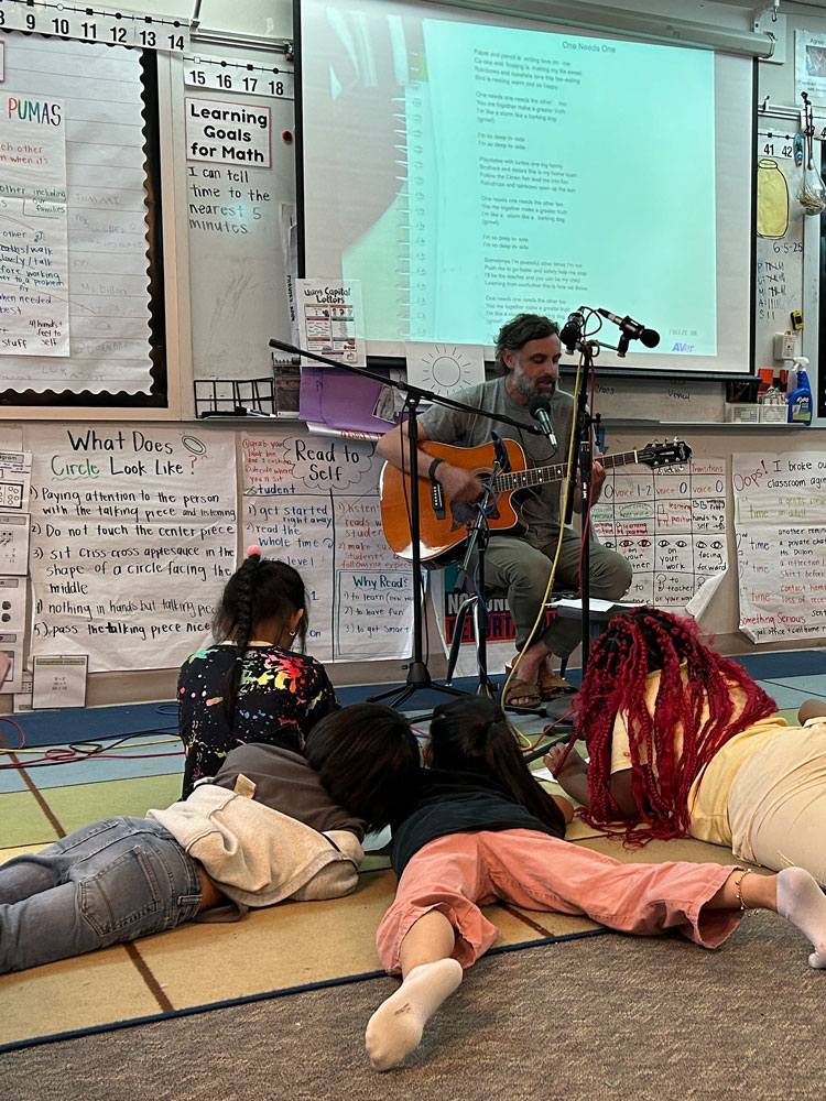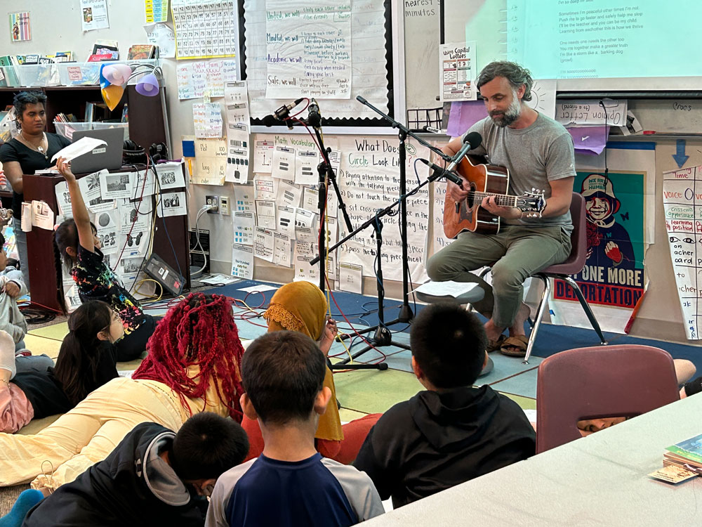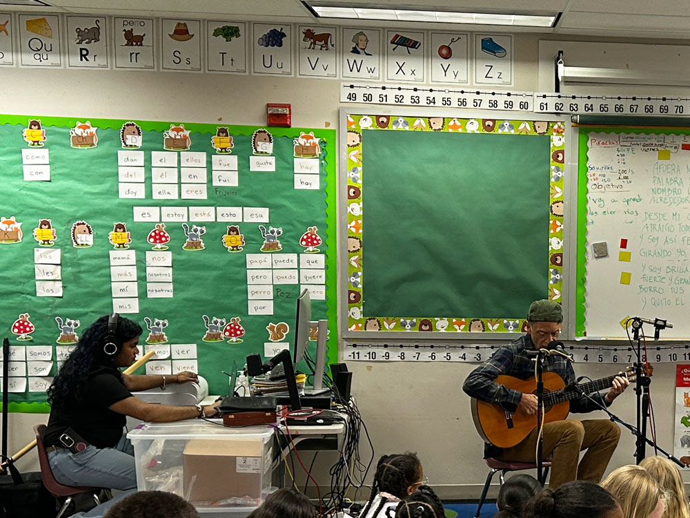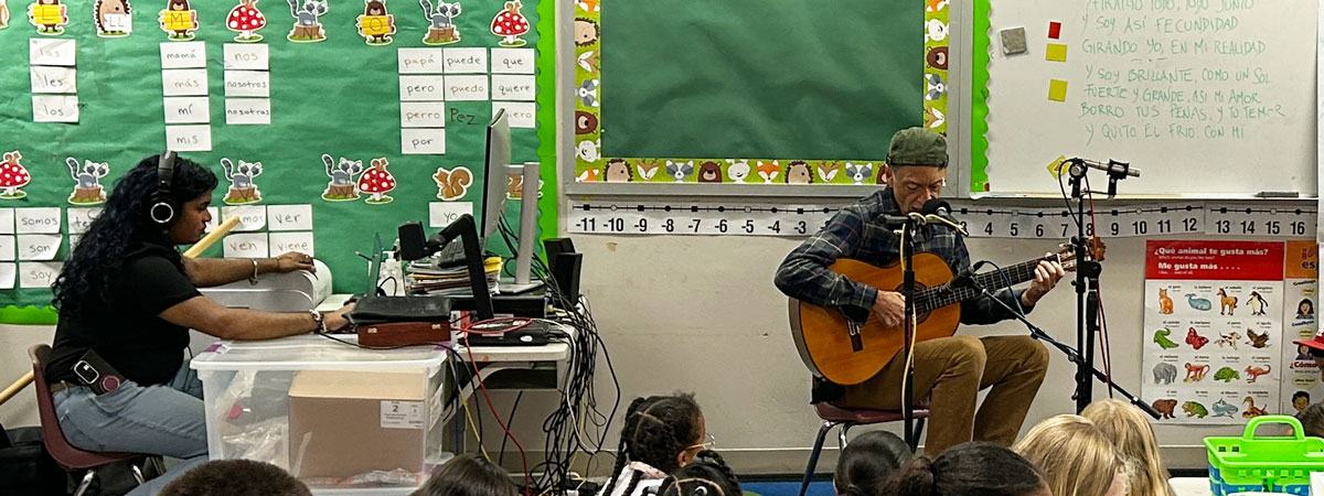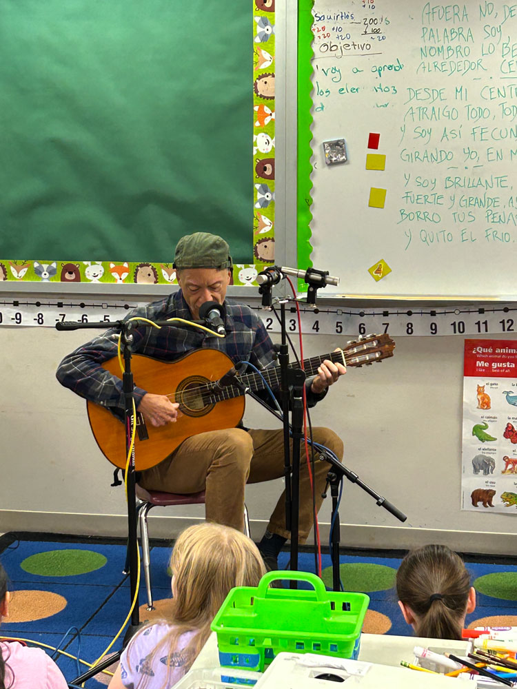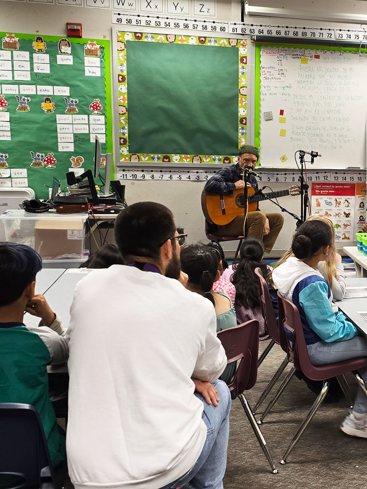 In the 2024-2025 school year, 2nd graders at Concord International Elementary School worked with Jack Straw writer and teaching artist Vicky Edmonds to write original poems about their feelings, emotions, and what they’re like deep inside. Jack Straw musicians Tito Ramsey and Abel Rocha wrote songs inspired by the students’ poems – Tito working with Ms. Dillon’s class, and Abel with Mr. Martinez and Ms. Perry-Menon’s classes. Abel and Tito joined the students in class along with engineers Daniel Guenther and Ayesha Ubayatilaka to teach them the songs and record them singing together.