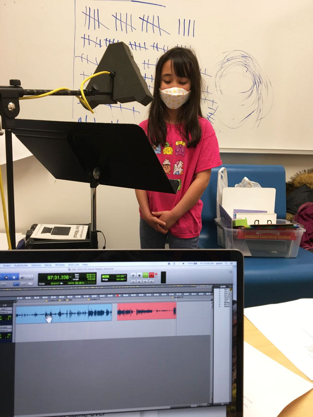 After completing the writing phase, students worked with Jack Straw vocal coaches on reading their stories out loud and to prepare for the recording process. Students then worked one-on-one with Jack Straw vocal coaches and audio engineers to record their words and to create sound effects. The students also created original art inspired by their stories with art teacher Temple McNeer.