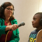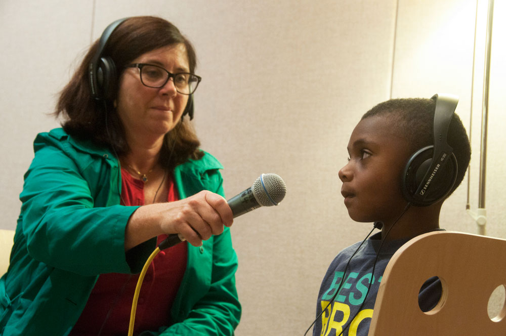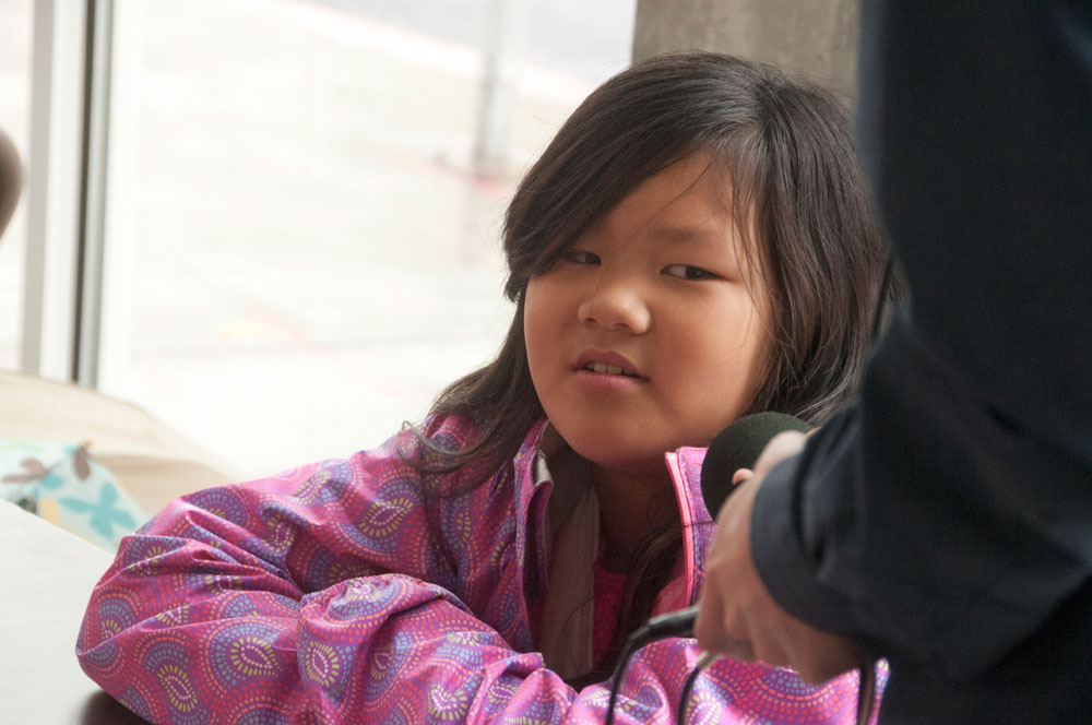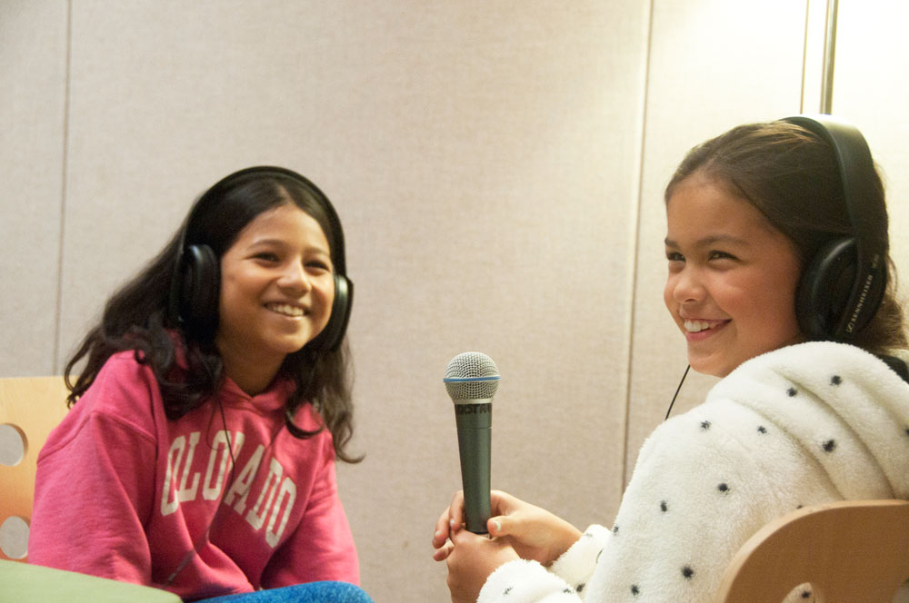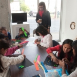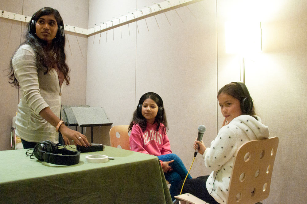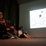 ET brought the students into the gallery to show them the installation and explained the process behind its development – which involved many hours of drawing, recording interviews and location sounds, and editing video and soundscapes. Then the students interviewed each other and created short sound pieces of their stories.