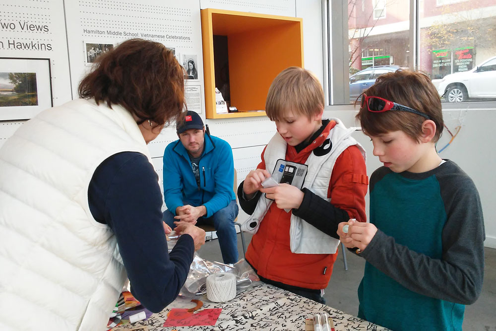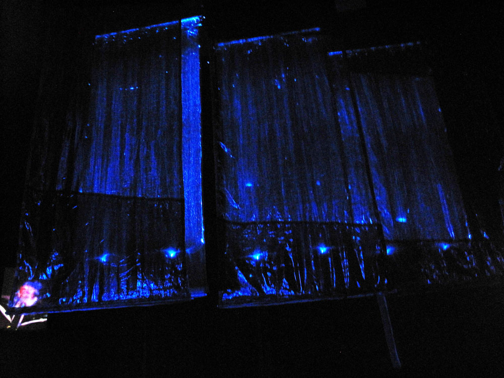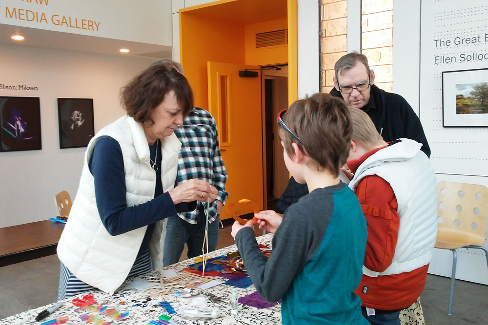 In December 2017, Jack Straw and Arts and Visually Impaired Audiences (AVIA) presented an accessible art workshop at Jack Straw in conjunction with the installation Mikawa by composer Garrett Fisher and visual artist Tori Ellison. The installation incorporated gently moving fiber-optic and fabric panels, backlit superimposed photographs, and sound from composer Garrett Fisher’s opera The Iris. The piece takes inspiration from a poem in the ancient Japanese epic Tales of Ise, wherein a poet travels to the watery province to meditate on longing, beauty, and the ephemeral.