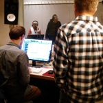 Next, the participants created a sound collage using their voices and sounds they created in the studio. The text they used was a short poem by Jesse Minkert, inspired by Mikawa.