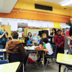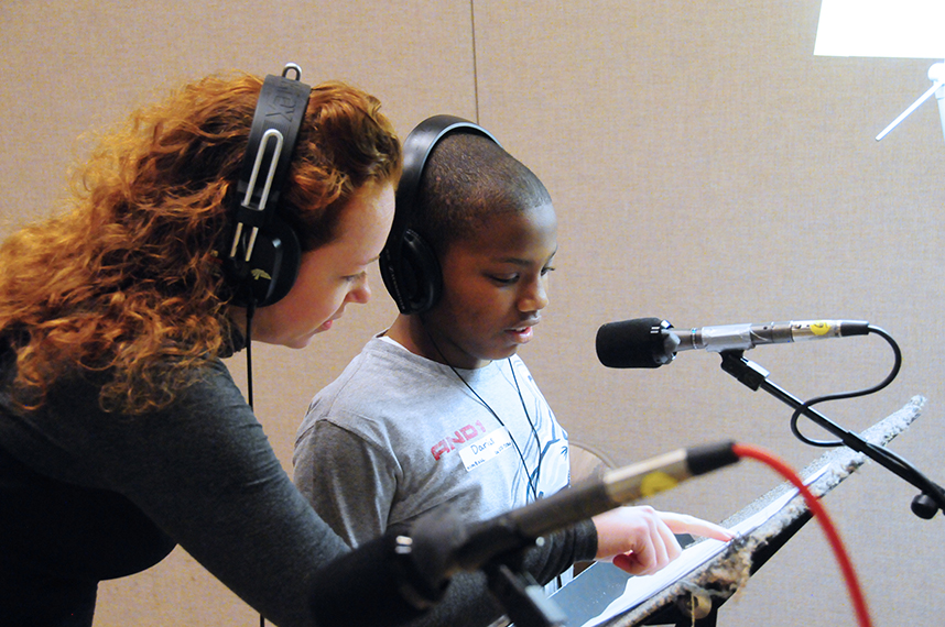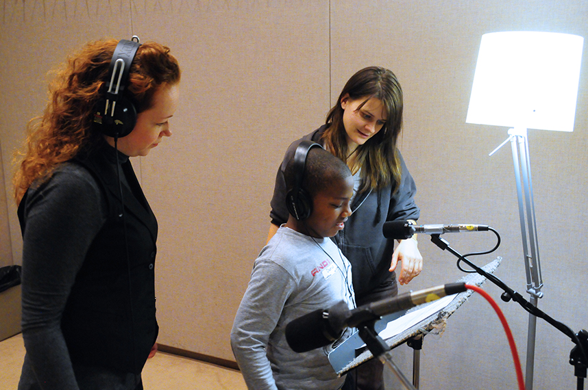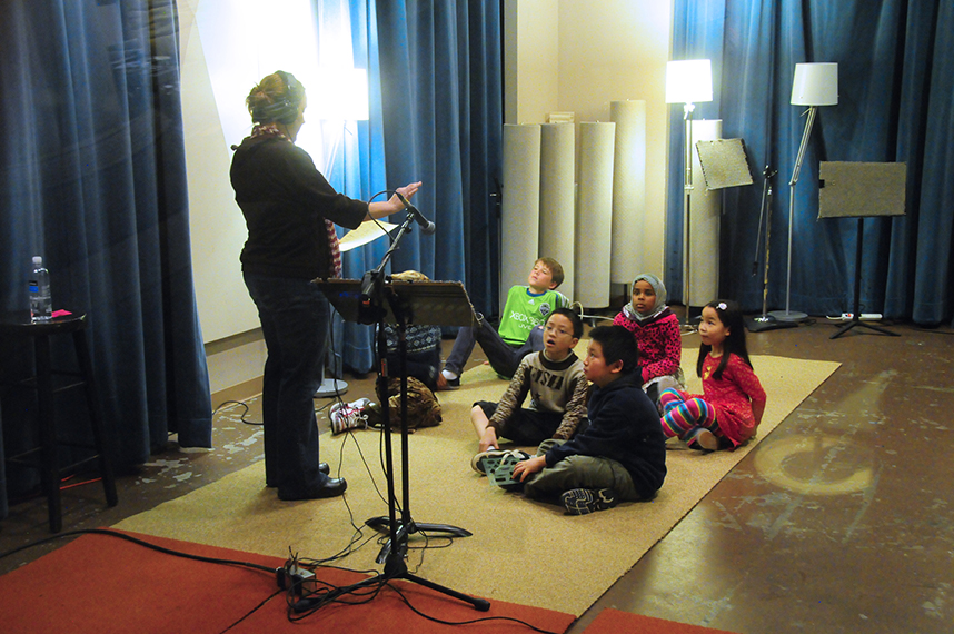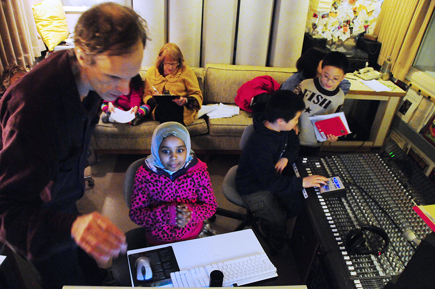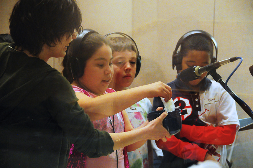 For this project, each student from the three third grade classes at Kimball Elementary School wrote, performed, created sound effects, and produced a story about their favorite family holiday with help from teaching artist and poet Judith Roche.