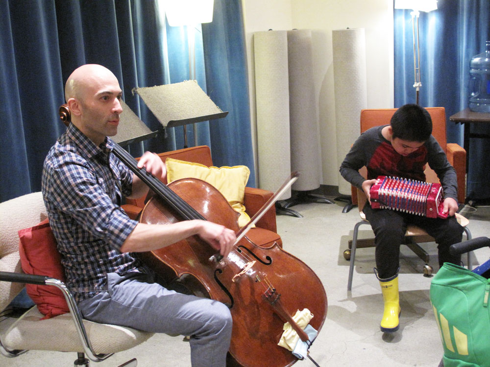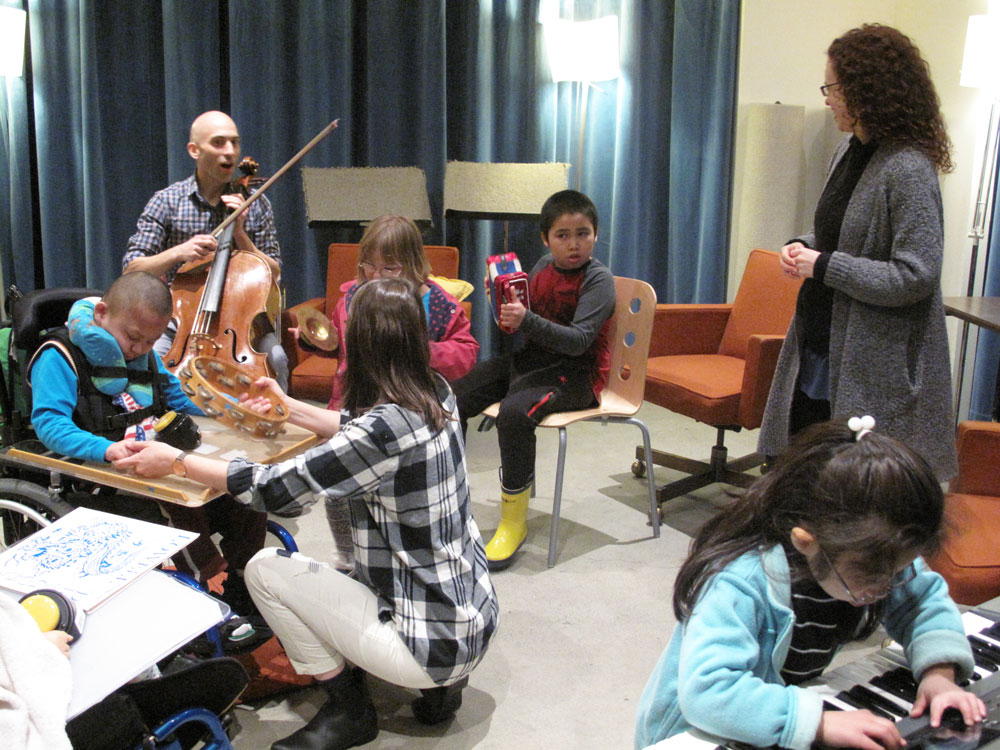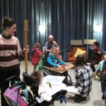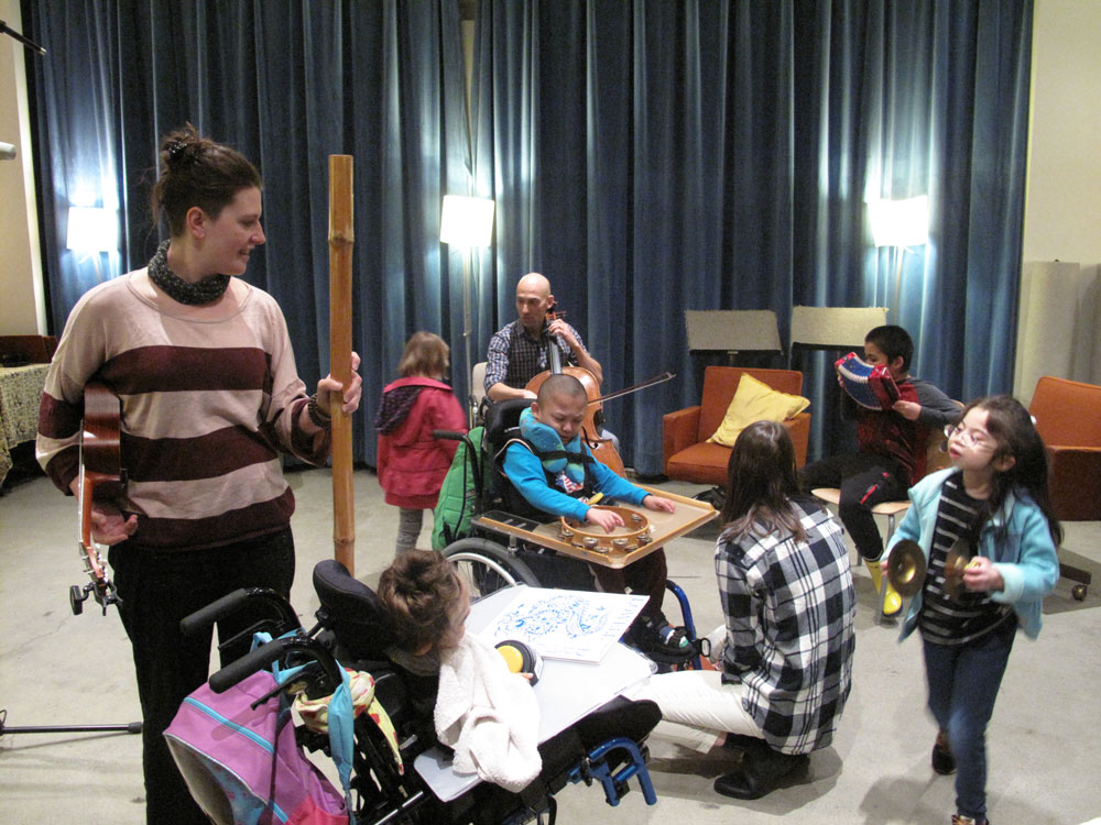 Students in Jessica, Sara, and Heidi’s self-contained special education classrooms created their own poems with poet Samar Abulhassan and helper Peter Williams. Armed with poems and lunch, the kids and their helpers came to Jack Straw. Students absorbed the sounds of the installation Meditations on Water by City Meditation Crew in the Jack Straw New Media Gallery, recorded their poems in the studios, experimented making sounds with a variety of objects from rain sticks to cymbals, and had a music jam with cello, keyboard, accordion, and more!