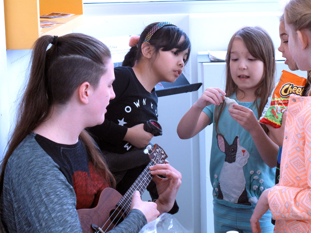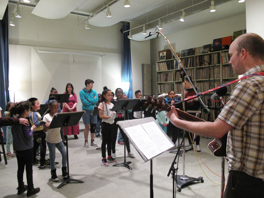 Tai and Levi visited the students in the classroom to teach them the songs, which they then practiced in school. As the culmination of the project, the students visited Jack Straw’s studios. They recorded their individual poems with the help of vocal coaches Alyssa Keene and Katya Landau and audio engineers Daniel Guenther, Joel Maddox, and Tom Stiles, and then played and sang their songs as a group with Tai and Levi.