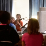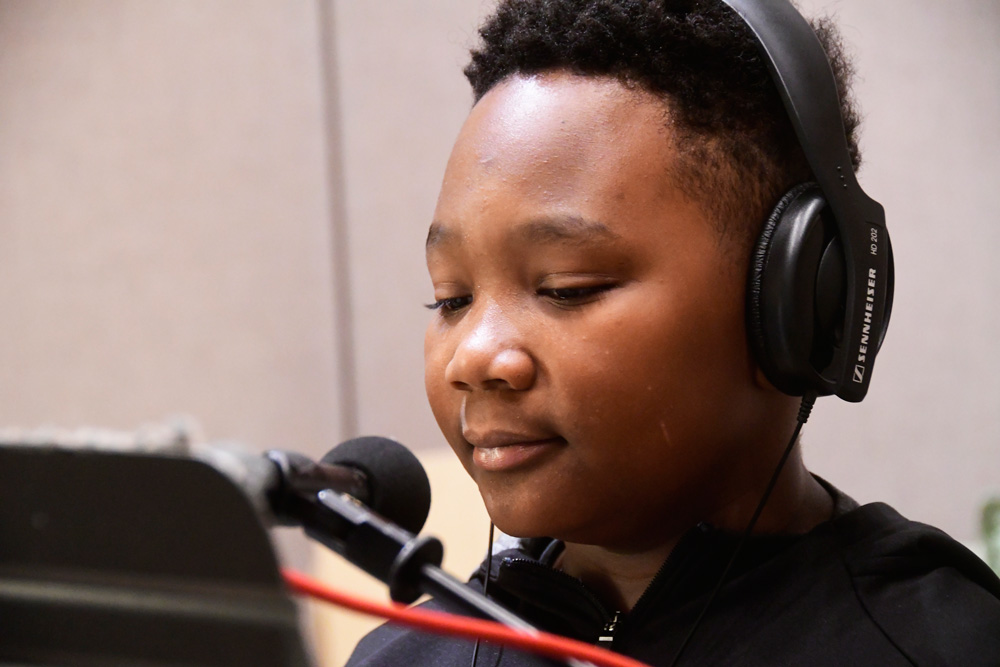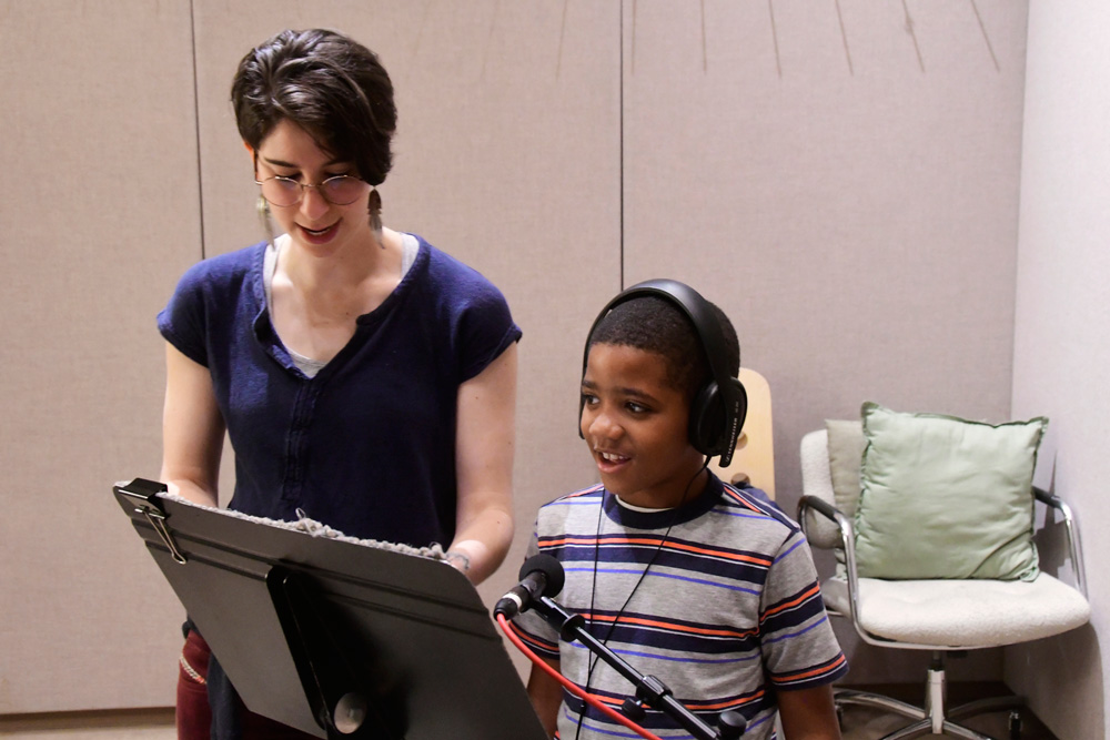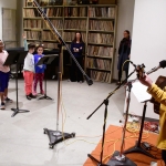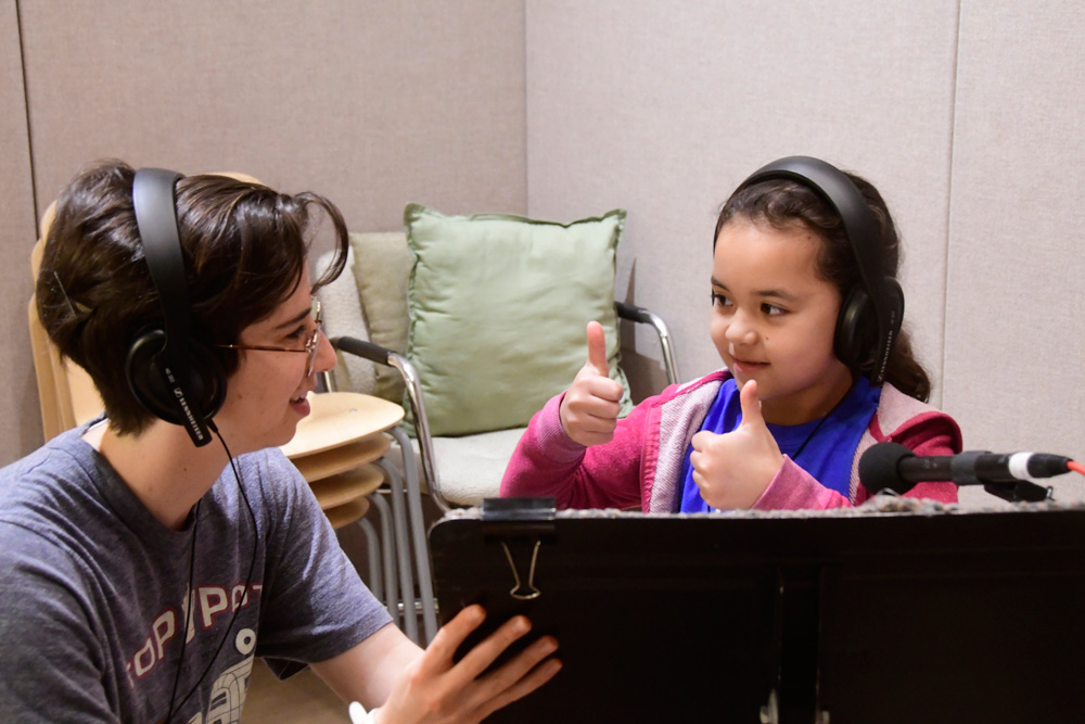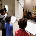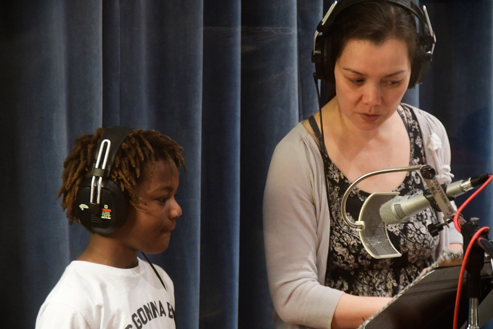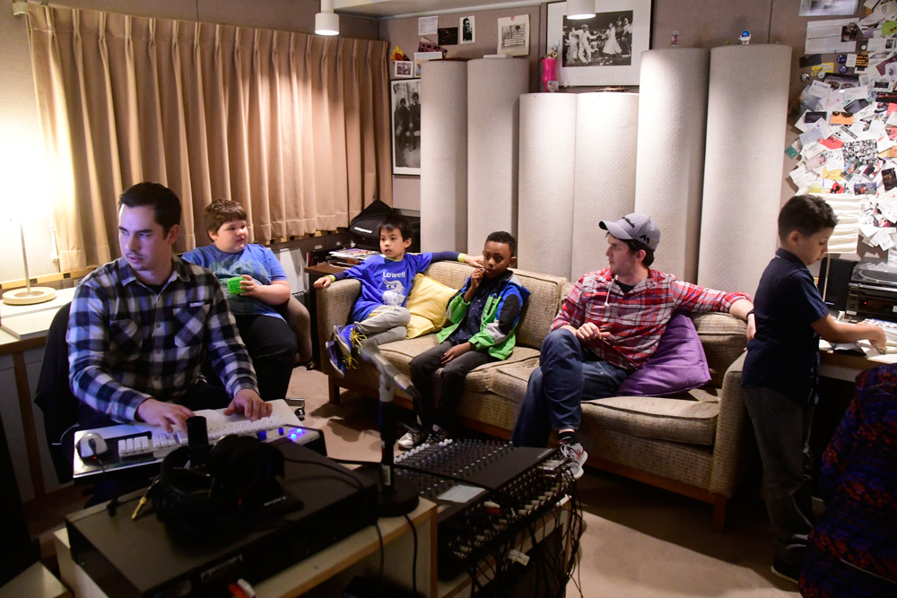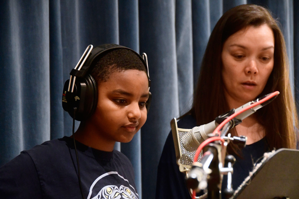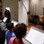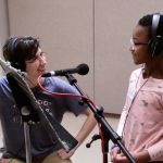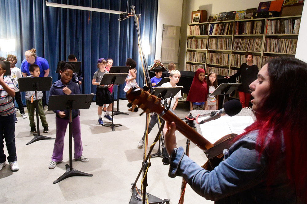 Tai and Levi visited the students in the classroom to teach them the songs, which they then practiced in school. Jack Straw’s vocal coaches also visited the classroom to help the students read their poems out loud. As the culmination of the project, the students visited Jack Straw’s studios. They recorded their individual poems with the help of vocal coaches Sunam Ellis, Alyssa Keene, and Katya Landau and audio engineers Daniel Guenther and Joel Maddox, and then played and sang their songs as a group with Tai and Levi, with help from Peter Williams on cello.