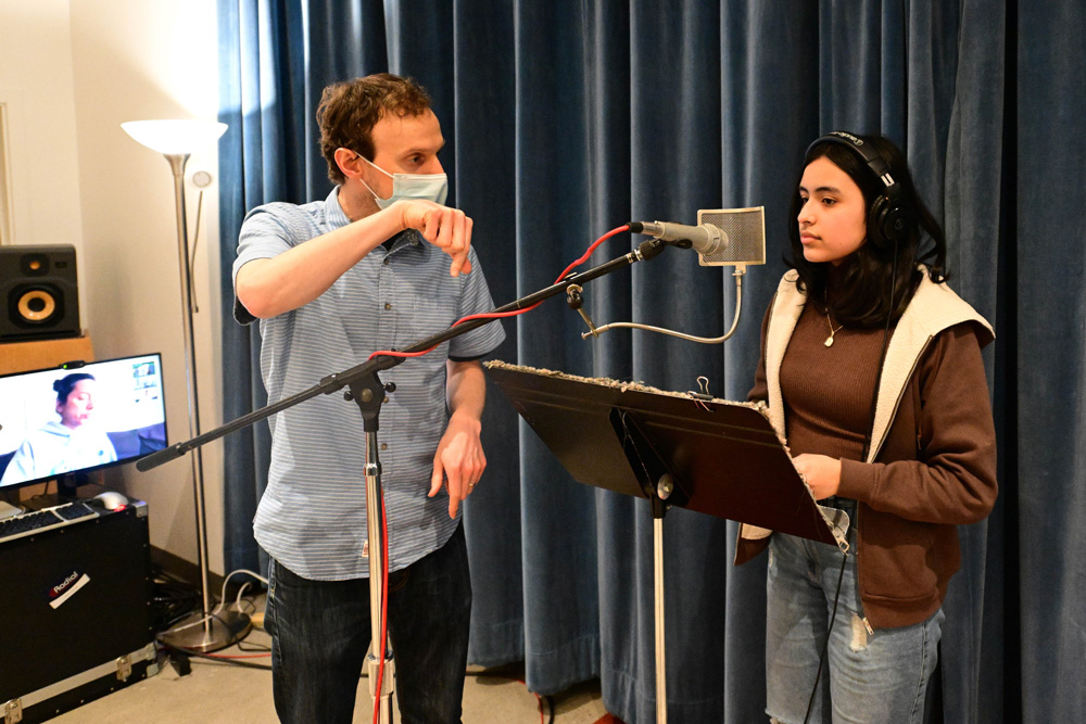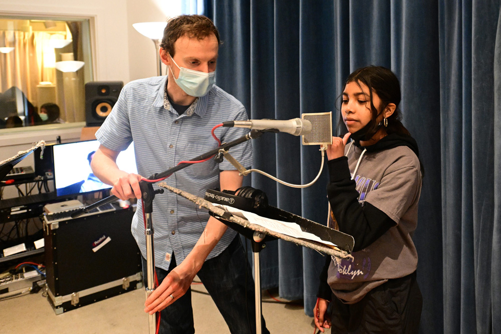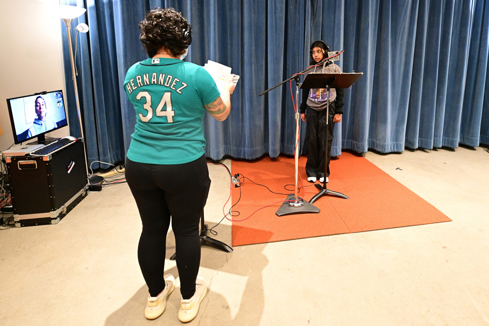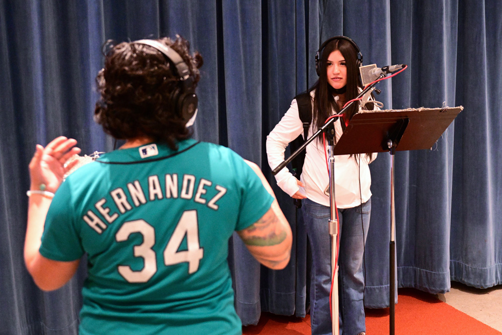 The Jack Straw artist team included writer Raúl Sánchez, vocal coaches Brenda Arellano and Marco Voli, audio engineers Daniel Guenther and Camelia Jade, photographer Sherwin Eng, designer Levi Fuller, and Executive Director Joan Rabinowitz. Denny students Kazune Hansell, Sarah Guzmán, and Chava Cohen created the cover art using ideas from their classmates. Special thanks to the students of Denny’s eighth grade Spanish immersion program and Denny staff. We especially want to thank our partner teacher Liz Barry, as well as these poets’ previous Dual Language teachers, Paty Gómez and Leticia Clausen; Instructional Assistants and Student Recording Support Experts Herman García, Viridiana Maciel and Ceyla Santamaría; Administrative Secretary Mary Wilson; Principal Jeff Clark; Interim Principal Jeff Lam; Fiscal Specialist Hillary Fleener; and Seattle Public Schools International Education Administrator Dr. Thad Williams, who helped make this project possible.