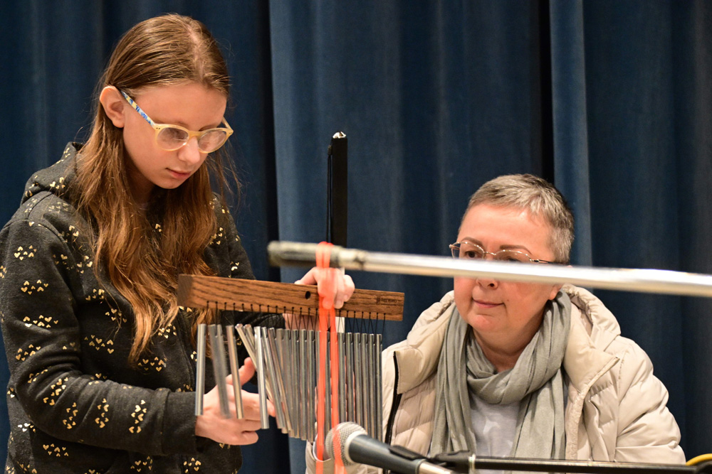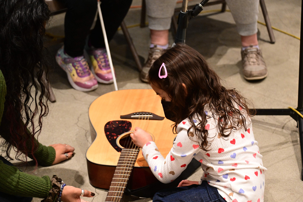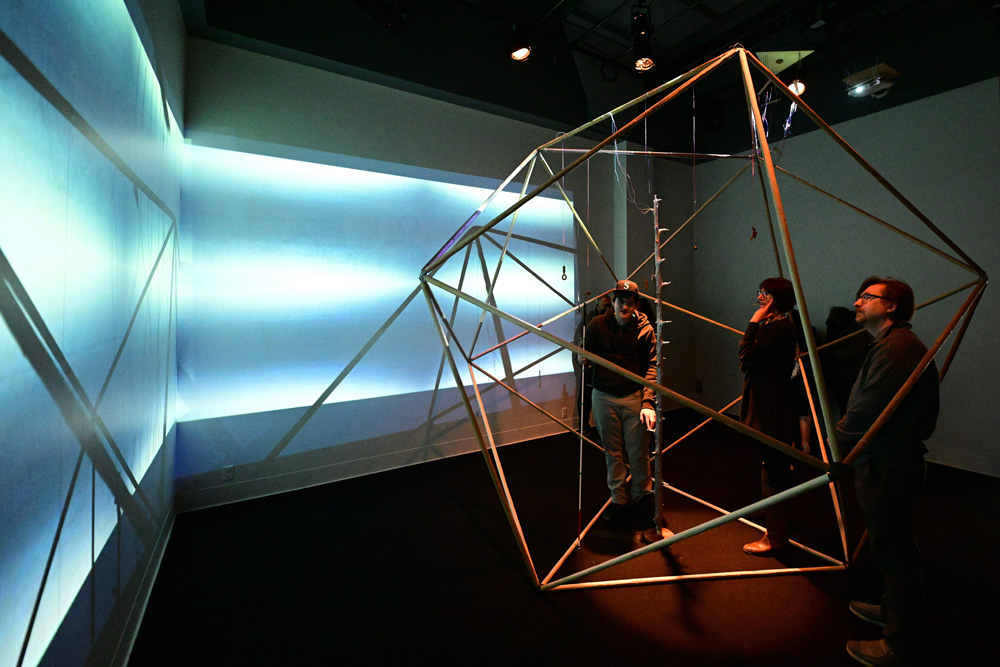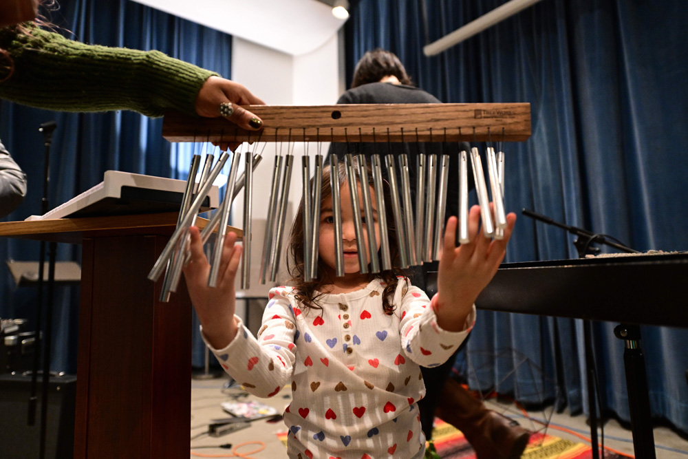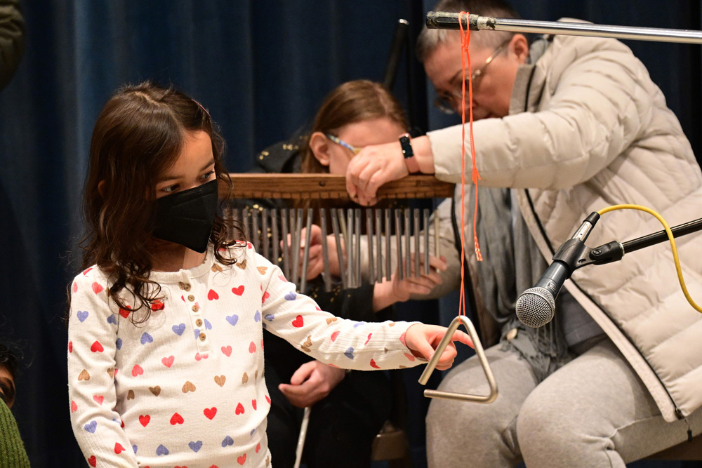 After exploring the installation and hearing about Sasha’s process and inspiration, participants learned about the concept of data sonification and how numbers can be translated into sound. Sasha and Jack Straw engineer Daniel Guenther guided attendees through the process of recording short musical samples, which were then manipulated and looped into an original soundscape. Before concluding, participants had the opportunity to explore the recorded samples and create their own unique mix.