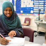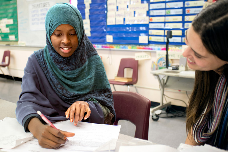 During our arts & technology program this year, World School students from many different countries participated in several projects to help strengthen their new English language and technical skills. For the “Cultural Traditions” project, the students received a visit from Jack Straw writer Claudia Castro Luna, who spoke with the students about her life growing up in El Salvador and leaving to come to the United States. Many of the students understood and identified with her story, having been through so much war and change themselves. Claudia is now writing down the stories from her life. She encouraged the students to share their stories, too.