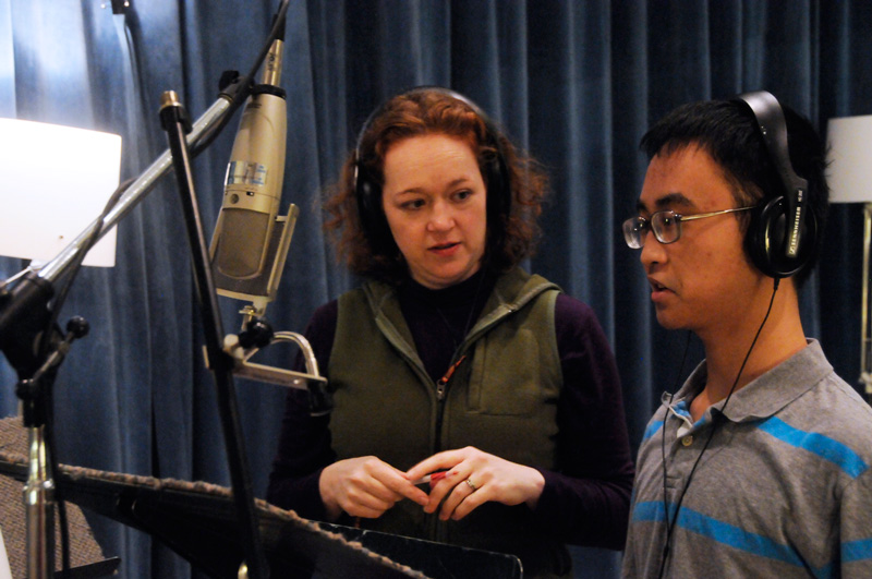 After working hard to write their stories, the students came to the Jack Straw Cultural Center to record their writing and create sound effects. Writer Kathleen Flenniken, vocal coaches Meg McLynn and Christine Marie Brown, ELL teacher Laurel Saito, production interns Daniel Guenther and Jake Muir, audio engineers CJ Lazenby and Tom Stiles, and chapbook designer Levi Fuller helped the students share the holiday memories found in the Holiday Moments chapbook and CD. Listen to some of the produced pieces below.