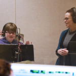 One youth participant joined us for this workshop, which took place just before the first Covid-19 restrictions began to be imposed in Washington State. At the beginning of the workshop, AVIA’s Jesse Minkert described the exhibit, including the virtual reality and sculptural elements, and Yunmi discussed her inspirations and process. Once she’d experienced the whole exhibit, our student went into the studio with Yunmi, vocal coach Meg McLynn, and Jack Straw’s engineers to create a sound and speech piece incorporating words and phrases that arose from experiencing the installation.